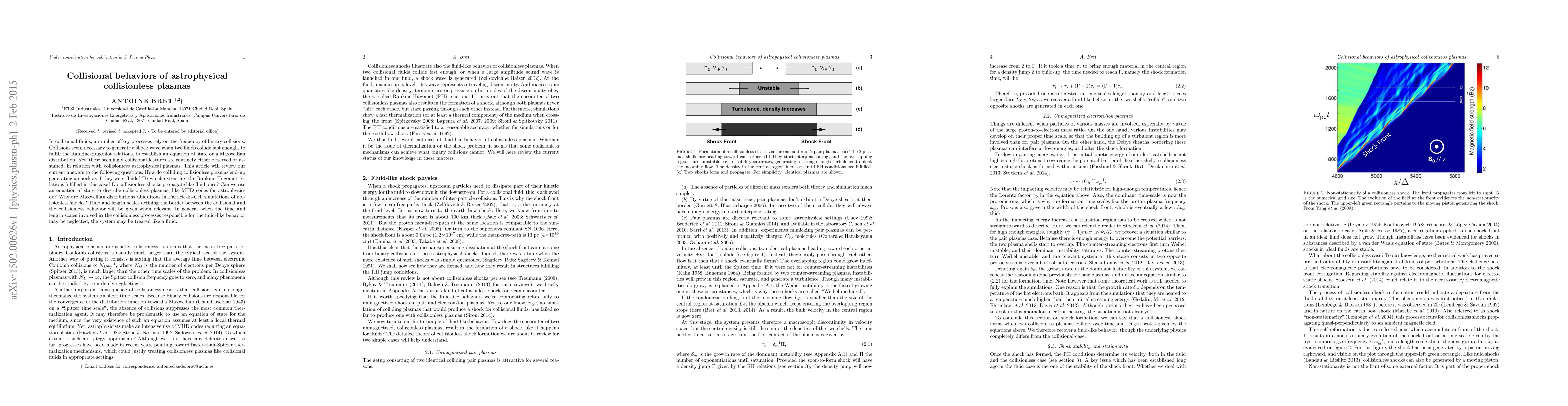 In collisional fluids, a number of key processes rely on the frequency of binary collisions. Collisions seem necessary to generate a shock wave when two fluids collide fast enough, to fulfill the Rankine-Hugoniot relations, to establish an equation of state or a Maxwellian distribution. Yet, these seemingly collisional features are routinely either observed or assumed, in relation with collision\emph{less} astrophysical plasmas. This article will review our current answers to the following questions: How do colliding collisionless plasmas end-up generating a shock as if they were fluids? To which extent are the Rankine-Hugoniot relations fulfilled in this case? Do collisionless shocks propagate like fluid ones? Can we use an equation of state to describe collisionless plasmas, like MHD codes for astrophysics do? Why are Maxwellian distributions ubiquitous in Particle-In-Cell simulations of collisionless shocks? Time and length scales defining the border between the collisional and the collisionless behavior will be given when relevant. In general, when the time and length scales involved in the collisionless processes responsible for the fluid-like behavior may be neglected, the system may be treated like a fluid.