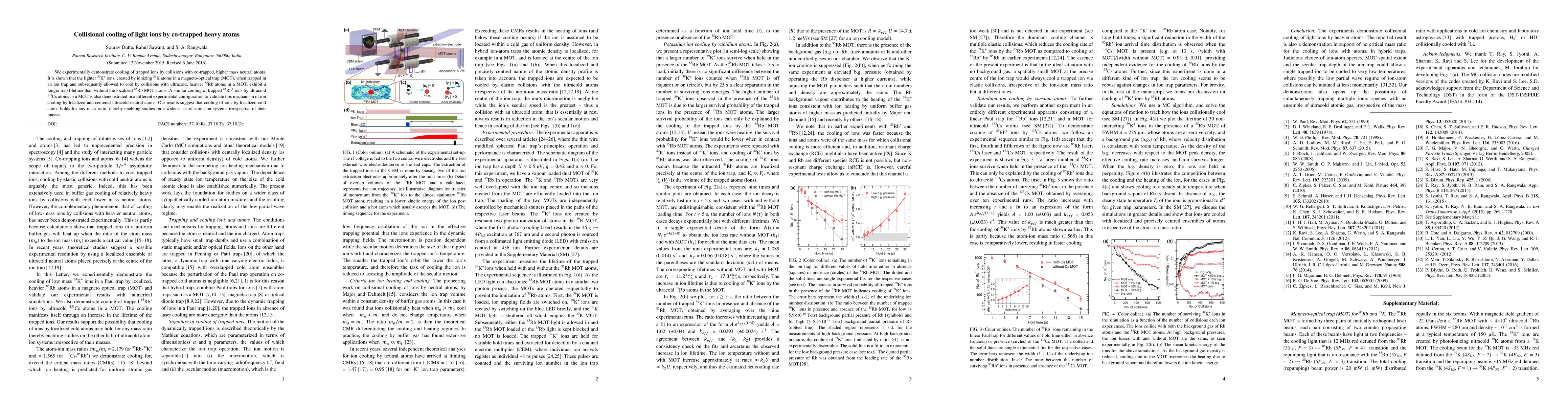 This research demonstrates the cooling of trapped light ions via collisions with co-trapped, ultracold heavy neutral atoms, showing that $^{39}$K$^{+}$ ions benefit from interactions with $^{85}$Rb atoms in a magneto-optical trap, and similarly, $^{85}$Rb$^{+}$ ions are cooled by $^{133}$Cs atoms, suggesting a broadly applicable mechanism for ion cooling.
