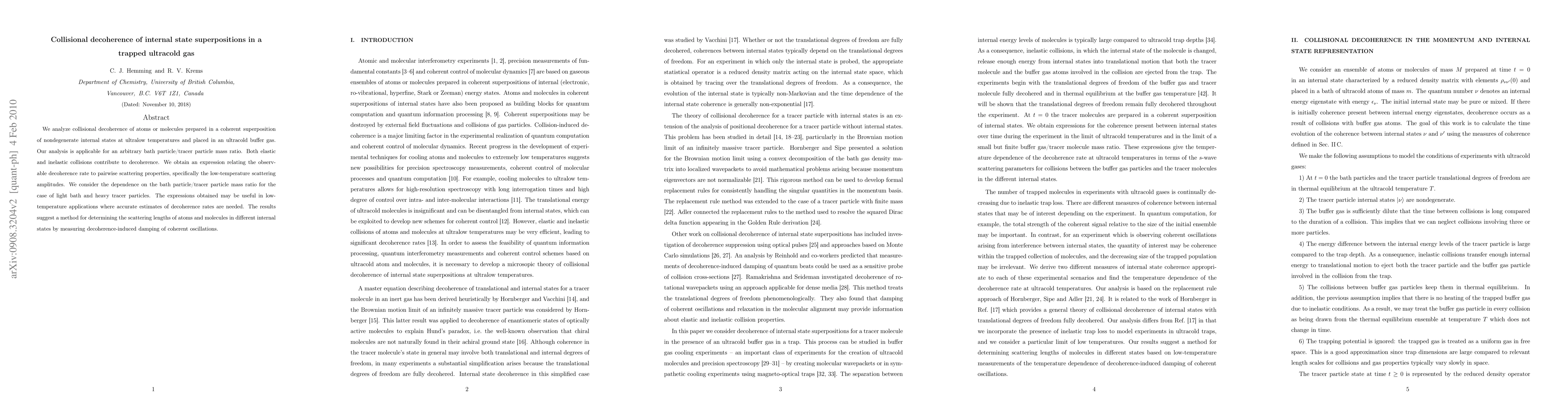 This paper investigates the collisional decoherence of internal state superpositions in ultracold gases, deriving expressions for decoherence rates influenced by both elastic and inelastic collisions. The findings provide a method for estimating scattering lengths by measuring decoherence-induced damping in coherent oscillations, useful for low-temperature applications.