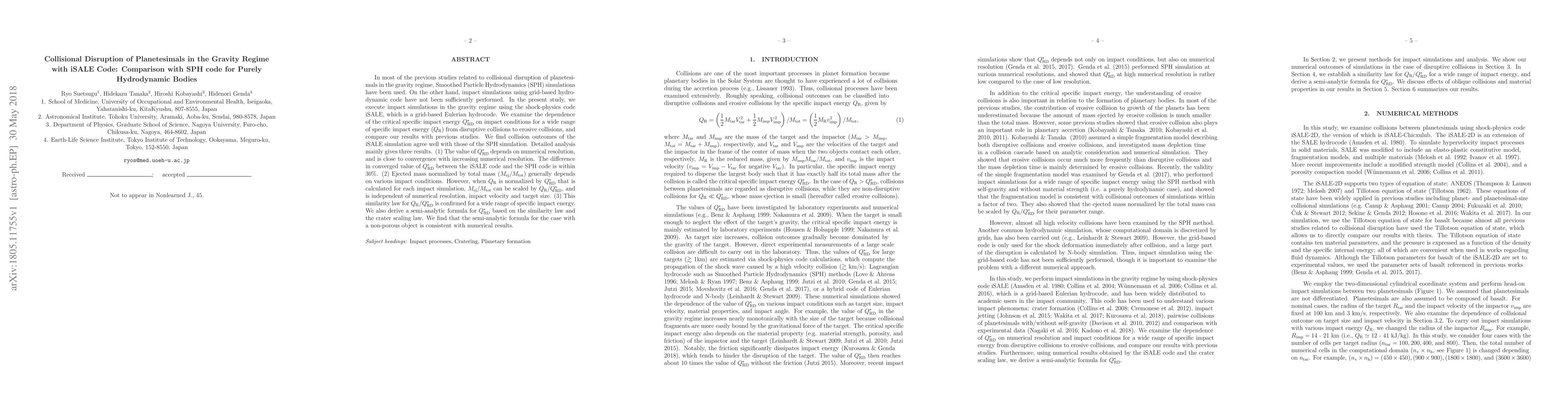 This study compares collisional disruption simulations of planetesimals using the grid-based Eulerian hydrocode iSALE with Smoothed Particle Hydrodynamics (SPH) simulations. The results show good agreement between the two methods, with the critical specific impact energy Q_RD* converging within 30% and a scaling law for ejected mass independent of numerical resolution and impact conditions.