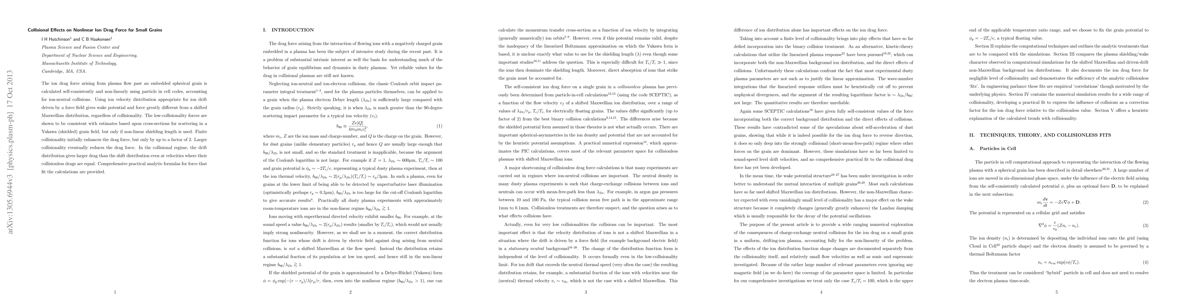 This paper investigates the nonlinear ion drag force on small grains in plasma, showing that ion-neutral collisions significantly alter the force compared to collisionless scenarios. The study finds that while finite collisionality can initially enhance the drag force, larger collisionality eventually reduces it, providing practical analytic formulas for the force.