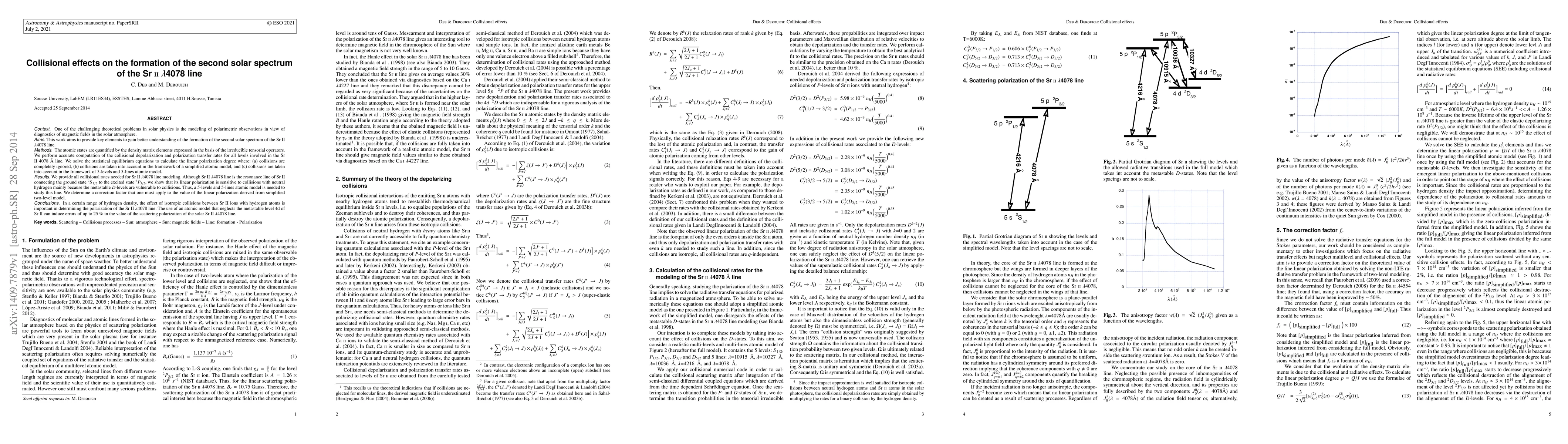 This work aims to provide key elements to gain better understanding of the formation of the second solar spectrum of the Sr II $\lambda$4078 line. We show that in a certain range of hydrogen density, the effect of isotropic collisions between Sr II ions with hydrogen atoms is important in determining the polarization of the Sr II $\lambda$4078 line. The use of an atomic model that neglects the metastable level 4d of Sr II can induce errors of up to 25 \% in the value of the scattering polarization of the solar Sr II $\lambda$4078 line.