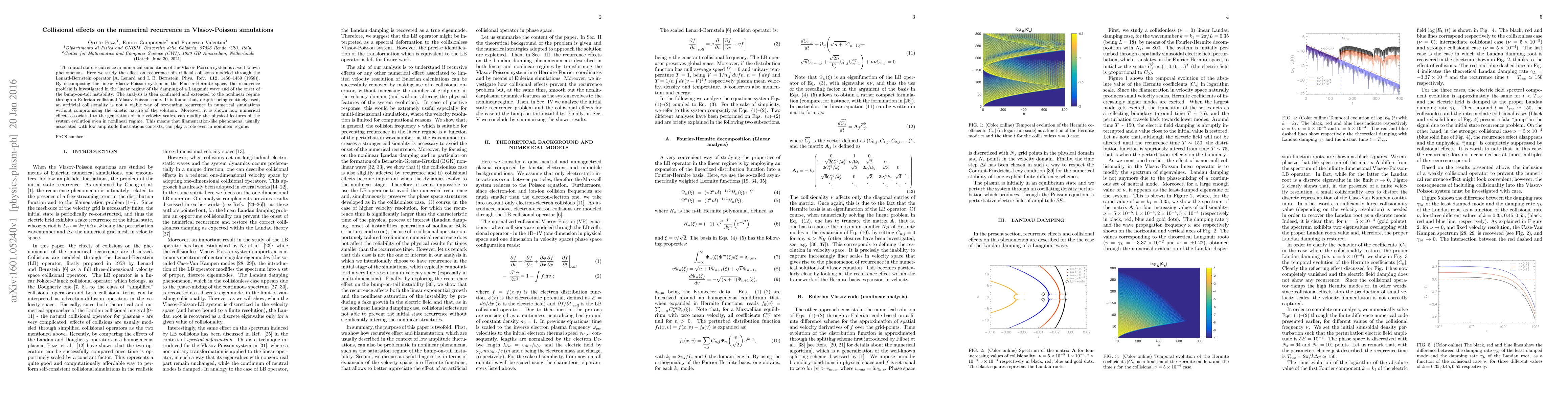This paper investigates the impact of artificial collisionality on the recurrence phenomenon in Vlasov-Poisson simulations, finding that it does not prevent recurrence without compromising the kinetic nature of the solution. It also highlights how numerical effects can alter physical features, suggesting filamentation-like phenomena may influence even nonlinear regimes.