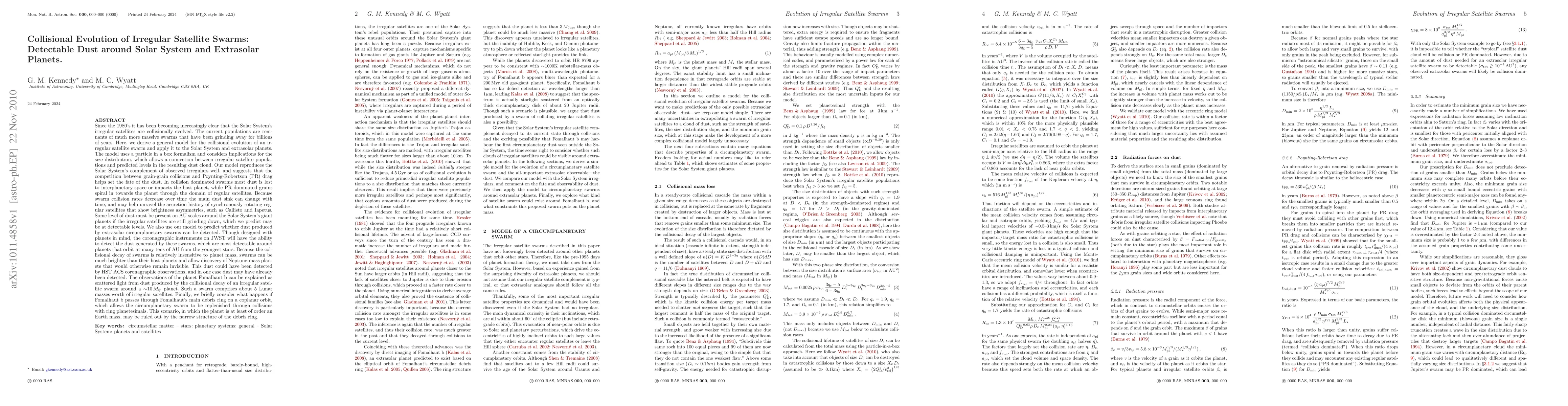 This paper models the collisional evolution of irregular satellite swarms, showing that dust from these swarms can be detectable around both Solar System and extrasolar planets. The study suggests that dust levels around giant planets may be detectable with current instruments like JWST and can help reveal the accretion history of regular satellites.