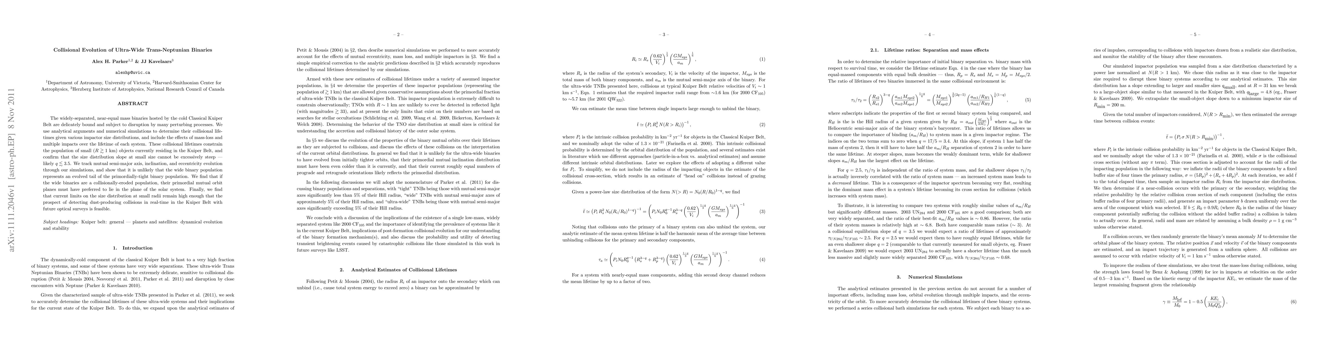 This study uses analytical models and simulations to determine the collisional lifetimes of widely-separated, near-equal mass binaries in the Kuiper Belt. Results suggest that the size distribution of small objects (R > ~1 km) in the Kuiper Belt cannot be excessively steep, likely with a slope less than ~3.5. The research also indicates that wide binaries may have originated from a primordial population with orbits in the plane of the solar system, and future optical surveys could detect dust-producing collisions in the Kuiper Belt.