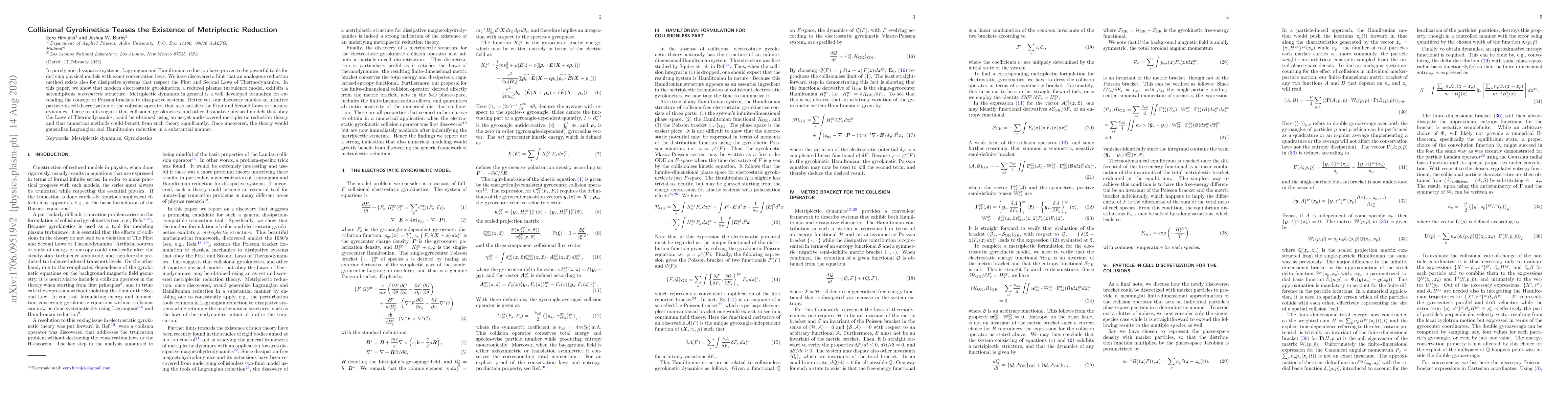 This paper reveals that modern electrostatic gyrokinetics, a reduced plasma turbulence model, unexpectedly exhibits a metriplectic structure, suggesting the existence of a metriplectic reduction method for dissipative systems. This discovery could lead to a new theory that generalizes Lagrangian and Hamiltonian reduction, potentially benefiting numerical methods for dissipative physical models.