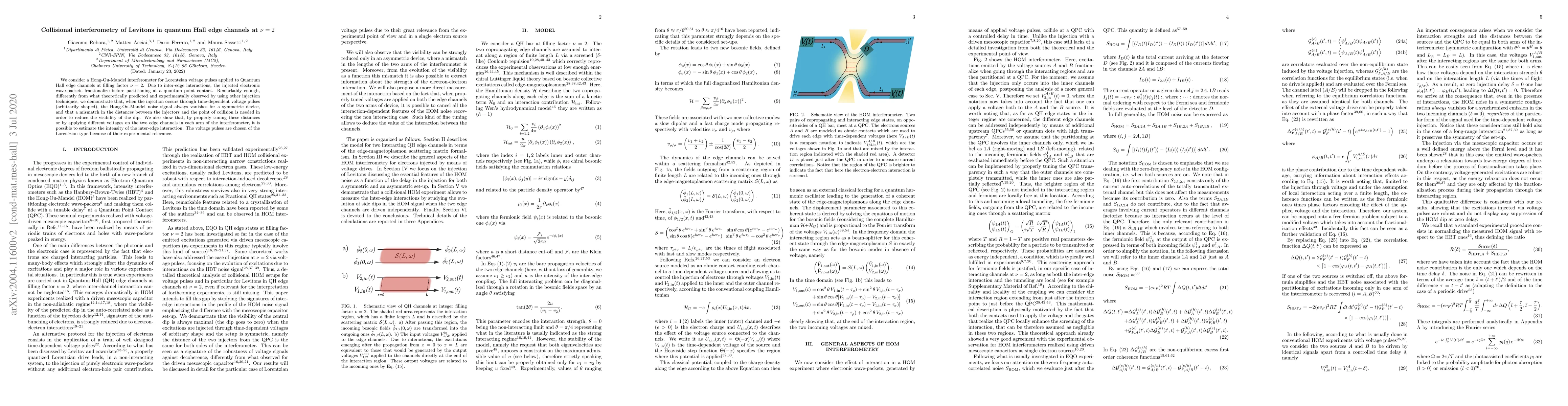 We consider a Hong-Ou-Mandel interferometer for Lorentzian voltage pulses applied to Quantum Hall edge channels at filling factor $\nu=2$. Due to inter-edge interactions, the injected electronic wave-packets fractionalize before partitioning at a quantum point contact. Remarkably enough, differently from what theoretically predicted and experimentally observed by using other injection techniques, we demonstrate that, when the injection occurs through time-dependent voltage pulses (arbitrarily shaped), the Hong-Ou-Mandel noise signal always vanishes for a symmetric device, and that a mismatch in the distances between the injectors and the point of collision is needed in order to reduce the visibility of the dip. We also show that, by properly tuning these distances or by applying different voltages on the two edge channels in each arm of the interferometer, it is possible to estimate the intensity of the inter-edge interaction. The voltage pulses are chosen of the Lorentzian type because of their experimental relevance.