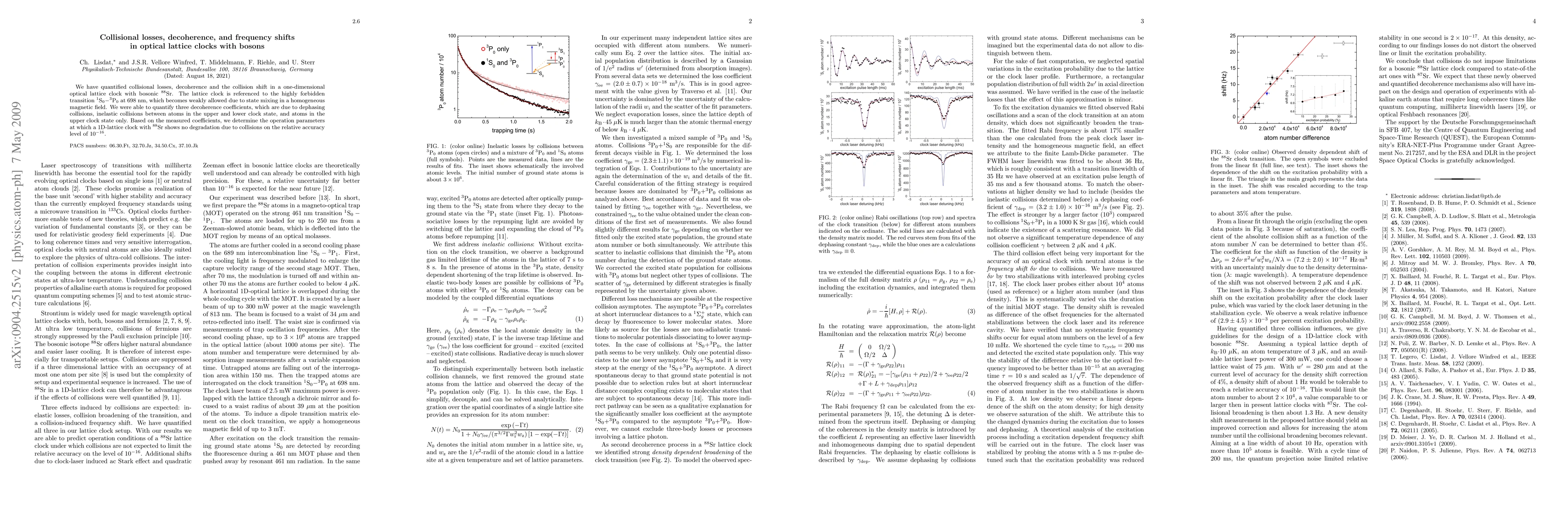 Summary: This study quantifies collisional losses, decoherence, and frequency shifts in a one-dimensional optical lattice clock using bosonic 88Sr atoms, referencing the 1S0 - 3P0 transition at 698 nm. The research determines optimal operation parameters to achieve relative accuracy of 10^-16 without collision-induced degradation.