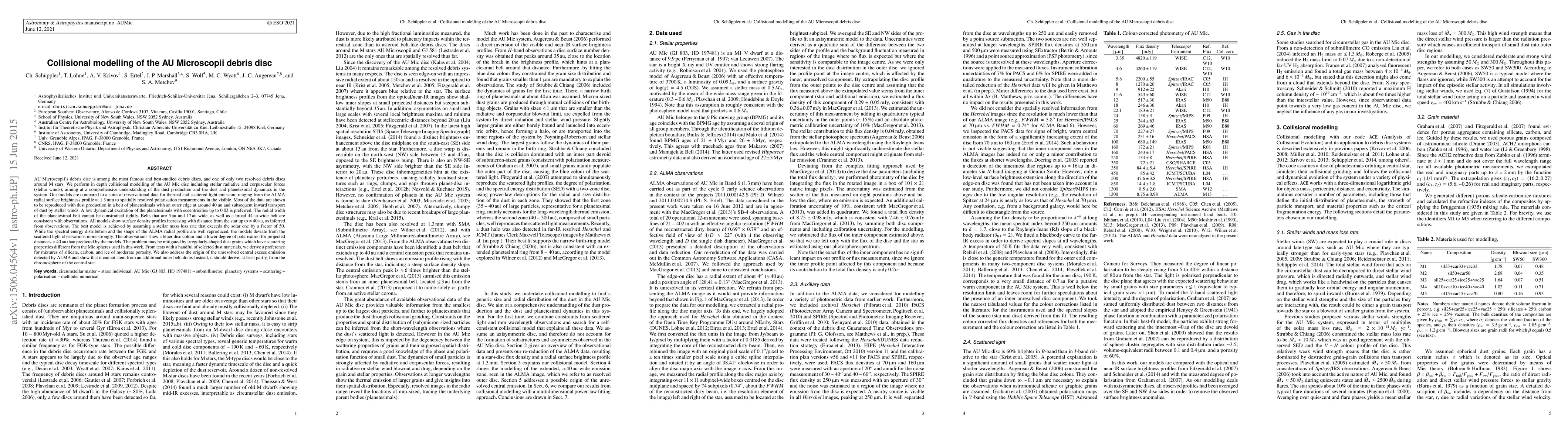 The spatially resolved AU Mic debris disc is among the most famous and best-studied debris discs. We aim at a comprehensive understanding of the dust production and the dynamics of the disc objects with in depth collisional modelling including stellar radiative and corpuscular forces. Our models are compared to a suite of observational data for thermal and scattered light emission, ranging from the ALMA radial surface brightness profile at 1.3mm to polarisation measurements in the visible. Most of the data can be reproduced with a planetesimal belt having an outer edge at around 40au and subsequent inward transport of dust by stellar winds. A low dynamical excitation of the planetesimals with eccentricities up to 0.03 is preferred. The radial width of the planetesimal belt cannot be constrained tightly. Belts that are 5au and 17au wide, as well as a broad 44au-wide belt are consistent with observations. All models show surface density profiles increasing with distance from the star as inferred from observations. The best model is achieved by assuming a stellar mass loss rate that exceeds the solar one by a factor of 50. While the SED and the shape of the ALMA profile are well reproduced, the models deviate from the scattered light data more strongly. The observations show a bluer disc colour and a lower degree of polarisation for projected distances <40au than predicted by the models. The problem may be mitigated by irregularly-shaped dust grains which have scattering properties different from the Mie spheres used. From tests with a handful of selected dust materials, we derive a preference for mixtures of silicate, carbon, and ice of moderate porosity. We address the origin of the unresolved central excess emission detected by ALMA and show that it cannot stem from an additional inner belt alone. Instead, it should derive, at least partly, from the chromosphere of the central star.