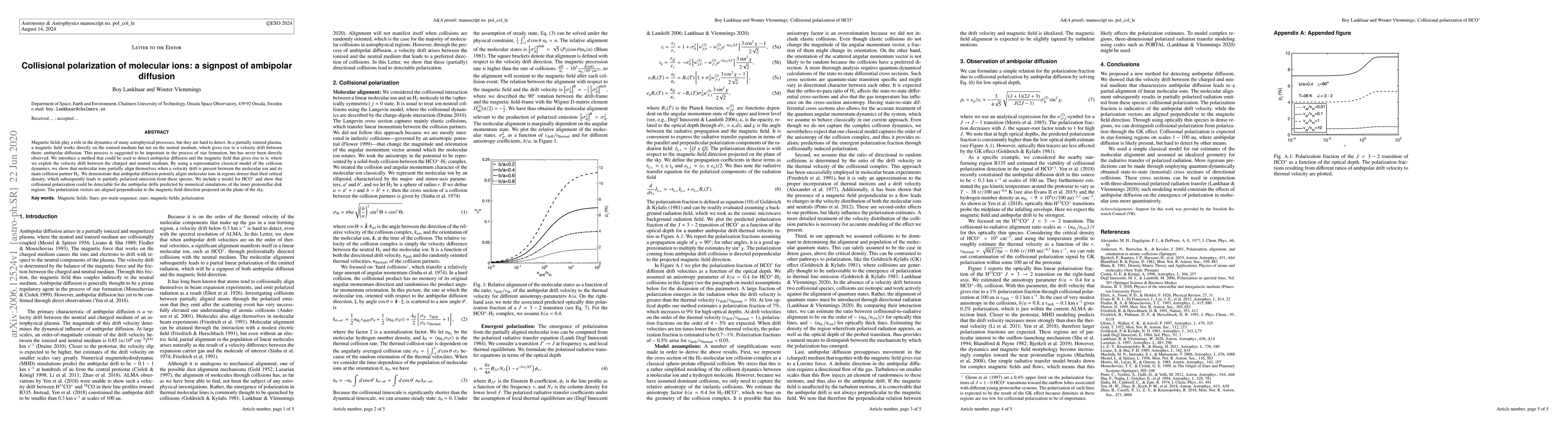 Magnetic fields play a role in the dynamics of many astrophysical processes, but they are hard to detect. In a partially ionized plasma, a magnetic field works directly on the ionized medium but not on the neutral medium, which gives rise to a velocity drift between them: ambipolar diffusion. This process is suggested to be important in the process of star formation, but has never been directly observed. We introduce a method that could be used to detect ambipolar diffusion and the magnetic field that gives rise to it, where we exploit the velocity drift between the charged and neutral medium. By using a representative classical model of the collision dynamics, we show that molecular ions partially align themselves when a velocity drift is present between the molecular ion and its main collision partner H2. We demonstrate that ambipolar diffusion potently aligns molecular ions in regions denser than their critical density, which subsequently leads to partially polarized emission from these species. We include a model for HCO+ and show that collisional polarization could be detectable for the ambipolar drifts predicted by numerical simulations of the inner protostellar disk regions. The polarization vectors are aligned perpendicular to the magnetic field direction projected on the plane of the sky.