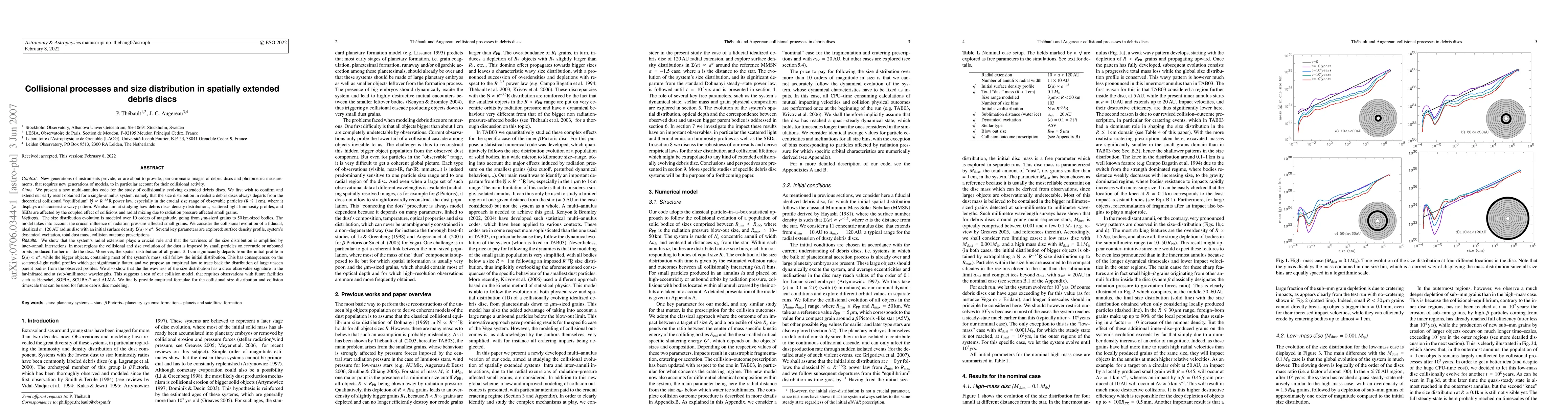 The development and application of a multi-annulus code capable of modeling the collisional evolution of spatially extended debris discs, taking into account the crucial effects of radiation pressure-affected small grains and radial mixing.