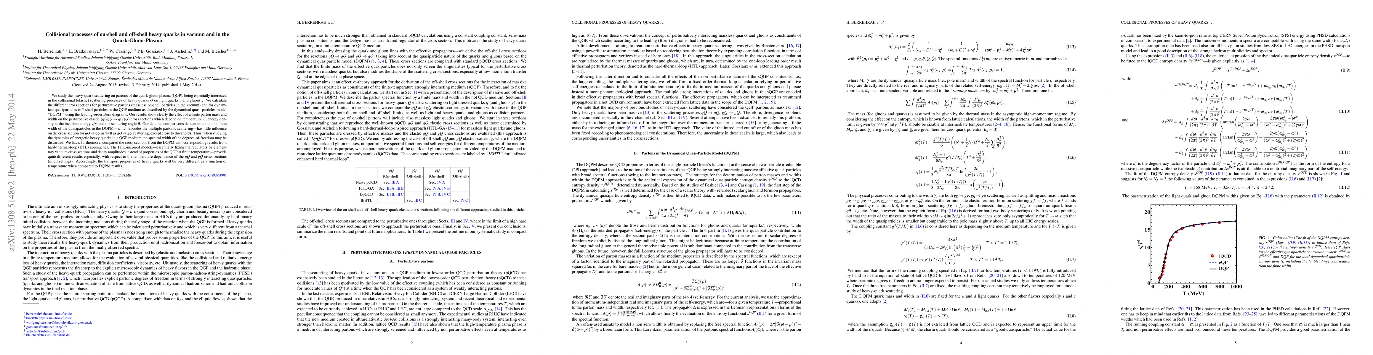 We study the heavy quark scattering on partons of the quark gluon plasma (QGP) being especially interested in the collisional (elastic) scattering processes of heavy quarks on quarks and gluons. We calculate the different cross sections for perturbative partons (massless on-shell particles in the vacuum) and for dynamical quasi-particles (off-shell particles in the QGP medium as described by the dynamical quasi-particles model "DQPM") using the leading order Born diagrams. Our results show clearly the effect of a finite parton mass and width on the perturbative elastic $(q(g) Q \rightarrow q (g) Q)$ cross sections which depend on temperature $T$, energy density $\epsilon$, the invariant energy $\sqrt{s}$ and the scattering angle $\theta$. Our detailed comparisons demonstrate that the finite width of the quasi-particles in the DQPM - which encodes the multiple partonic scattering - has little influence on the cross section for $q Q \rightarrow q Q$ as well as $g Q \rightarrow g Q$ scattering except close to thresholds. Thus when studying the dynamics of energetic heavy quarks in a QGP medium the spectral width of the degrees-of-freedom may be discarded. We have, furthermore, compared the cross sections from the DQPM with corresponding results from hard-thermal-loop (HTL) approaches. The HTL inspired models - essentially fixing the regulators by elementary vacuum cross sections and decay amplitudes instead of properties of the QGP at finite temperature - provide quite different results especially w.r.t. the temperature dependence of the $qQ$ and $gQ$ cross sections (in all settings). Accordingly, the transport properties of heavy quarks will be very different as a function of temperature when compared to DQPM results.