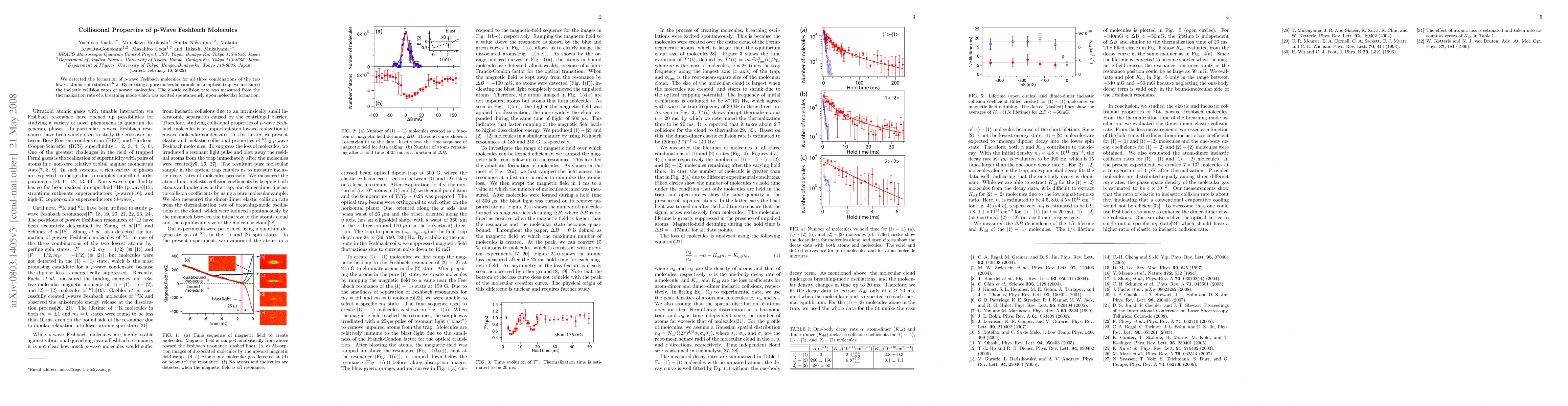 This research detected p-wave Feshbach molecules in 6Li and measured their inelastic and elastic collision rates, providing insights into their collisional properties. The study utilized a pure molecular sample in an optical trap to observe these rates.
