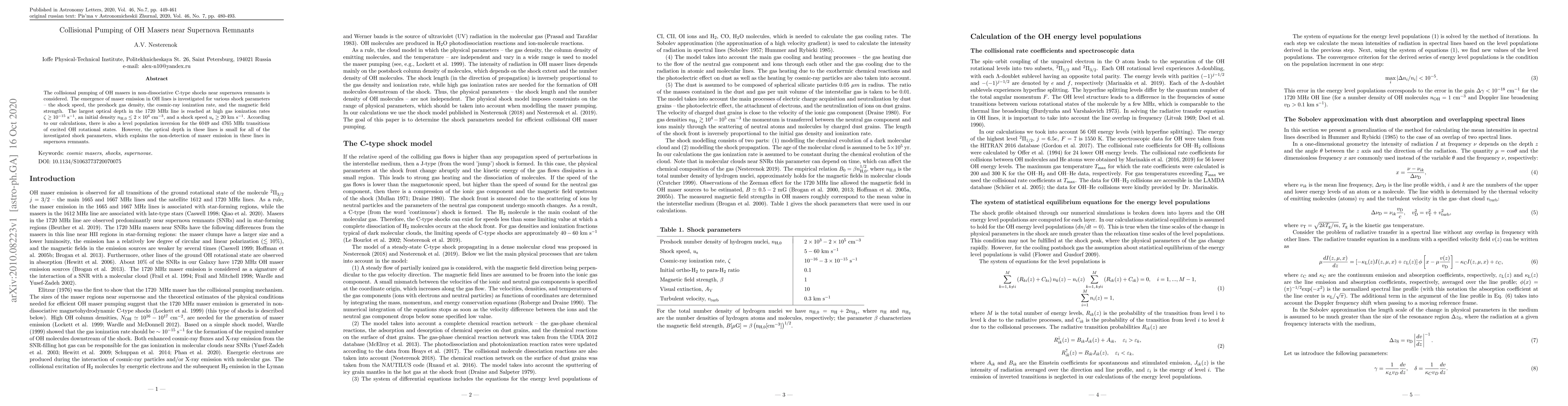The work is notable for its comprehensive analysis of various shock parameters on OH maser excitation, providing a nuanced understanding of the conditions necessary for maser action in supernova remnants.