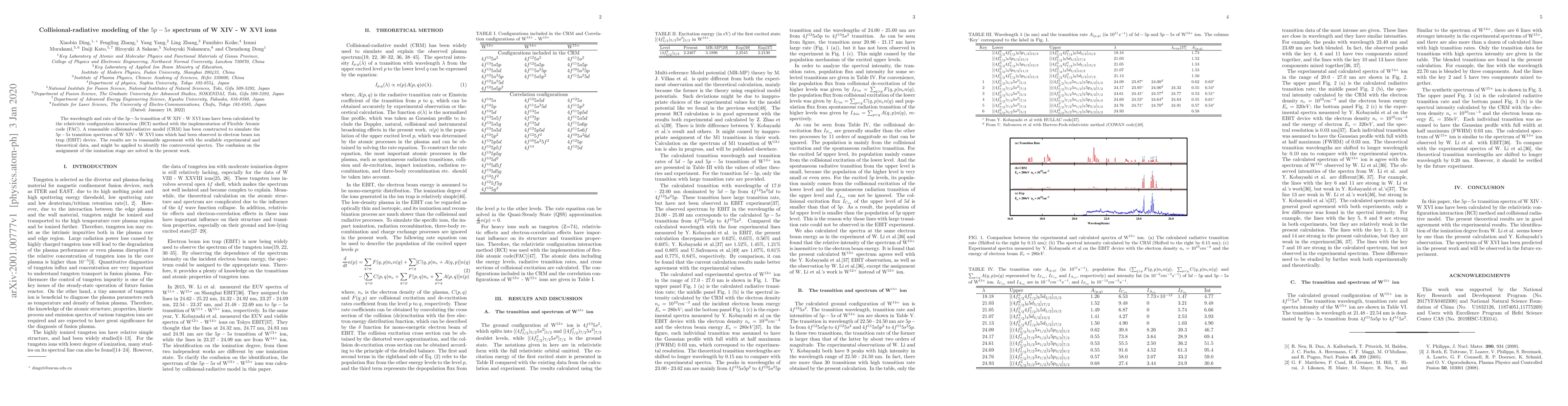 The wavelength and rate of the $5p-5s$ transition of W XIV - W XVI ions have been calculated by the relativistic configuration interaction (RCI) method with the implementation of Flexible Atomic code (FAC). A reasonable collisional-radiative model (CRM) has been constructed to simulate the $5p - 5s$ transition spectrum of W XIV - W XVI ions which had been observed in electron beam ion trap (EBIT) device. The results are in reasonable agreement with the available experimental and theoretical data, and might be applied to identify the controversial spectra. The confusion on the assignment of the ionization stage are solved in the present work.