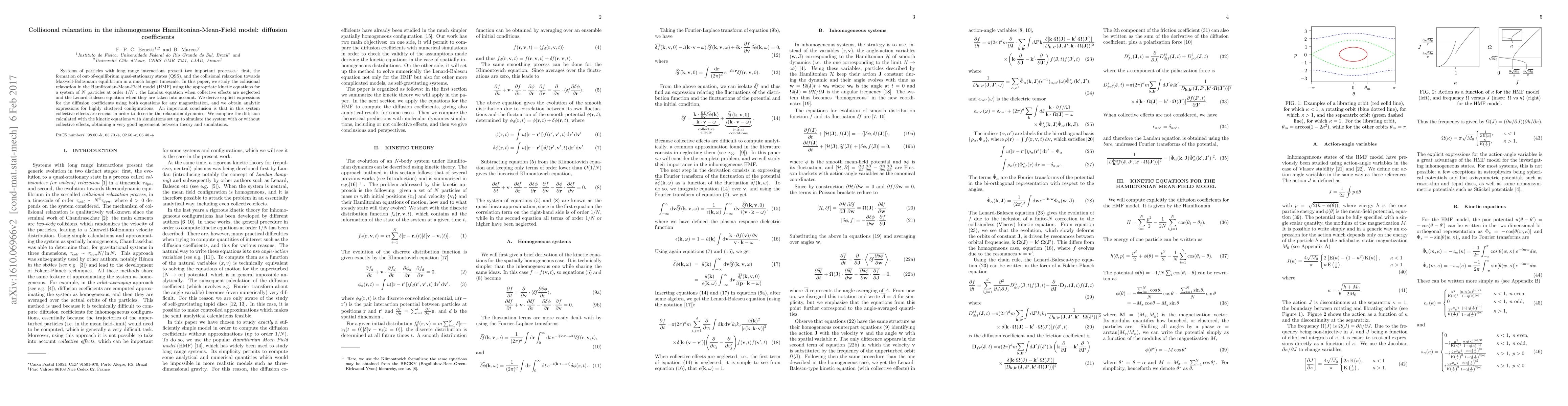 This paper investigates collisional relaxation in the Hamiltonian-Mean-Field model, deriving explicit expressions for diffusion coefficients using Landau and Lenard-Balescu equations. It finds that collective effects are crucial for accurately describing relaxation dynamics, with theoretical results matching simulation outcomes.