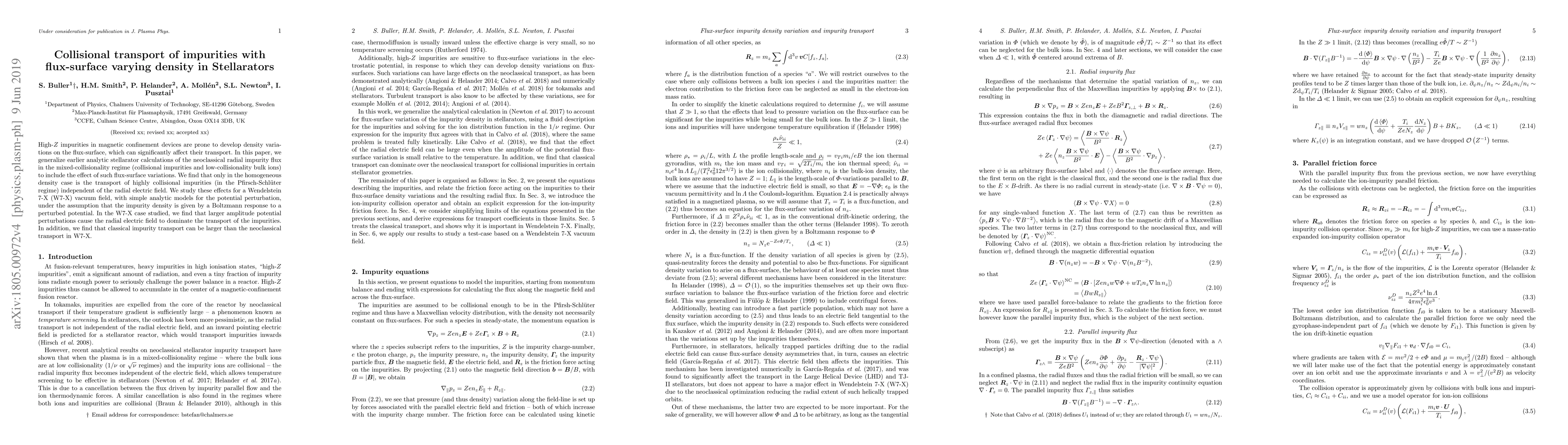 High-Z impurities in magnetic confinement devices are prone to develop density variations on the flux-surface, which can significantly affect their transport. In this paper, we generalize earlier analytic stellarator calculations of the neoclassical radial impurity flux in the mixed-collisionality regime (collisional impurity and low-collisionality bulk ions) to include the effect of such flux-surface variations. We find that only in the homogeneous density case is the transport of highly collisional impurities (in the Pfirsch-Schl\"{u}ter regime) independent of the radial electric field. We study these effects for a Wendelstein 7-X (W7-X) vacuum field, with simple analytic models for the potential perturbation, under the assumption that the impurity density is given by a Boltzmann response to a perturbed potential. In the W7-X case studied, we find that larger amplitude potential perturbations cause the radial electric field to dominate the transport of the impurities. In addition, we find that classical impurity transport can be larger than the neoclassical transport in W7-X.