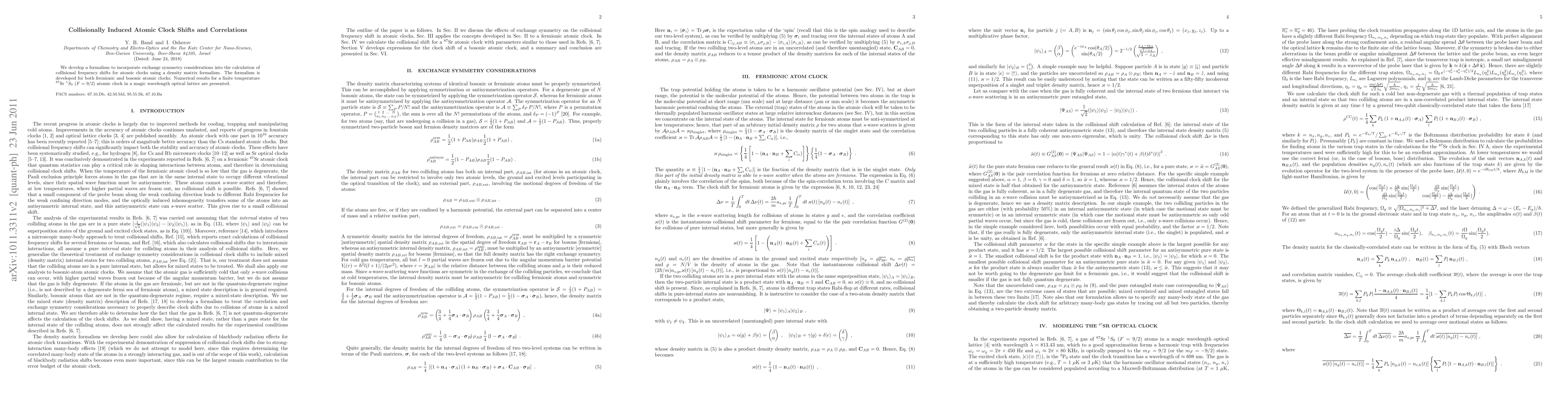 We develop a formalism to incorporate exchange symmetry considerations into the calculation of collisional frequency shifts and blackbody radiation effects for atomic clock transitions using a density matrix formalism. The formalism is developed for both fermionic and bosonic atomic clocks. Results for a finite temperature ${}^{87}$Sr ${}^1S_0$ ($F = 9/2$) atomic clock in a magic wavelength optical lattice are presented.