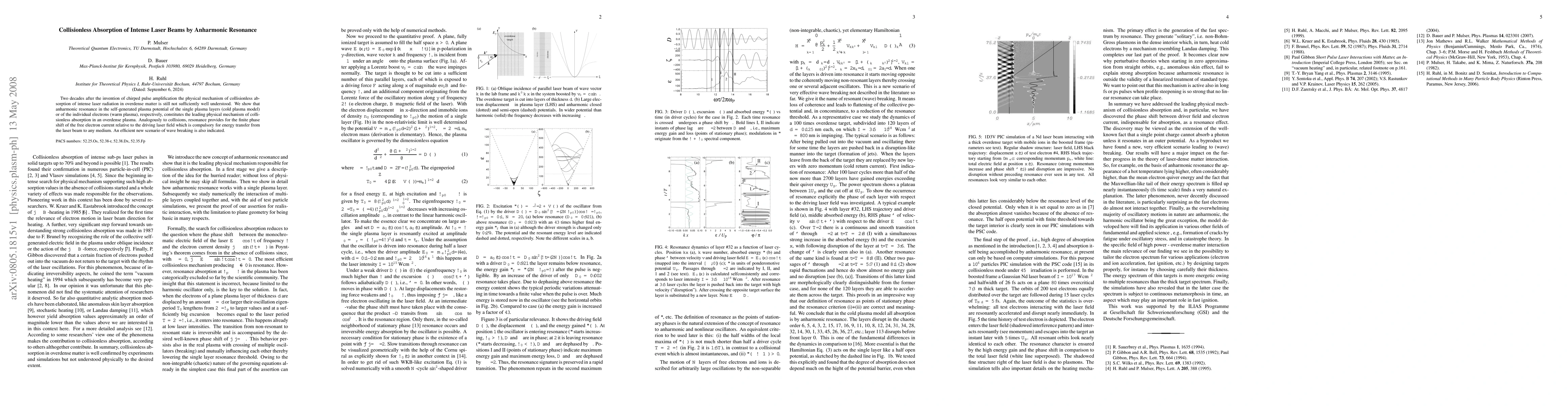This paper elucidates the collisionless absorption mechanism of intense laser beams in overdense plasmas, identifying anharmonic resonance as the primary process. It demonstrates that resonance enables the necessary phase shift for energy transfer, akin to collisional processes, and suggests a new wave breaking scenario.
