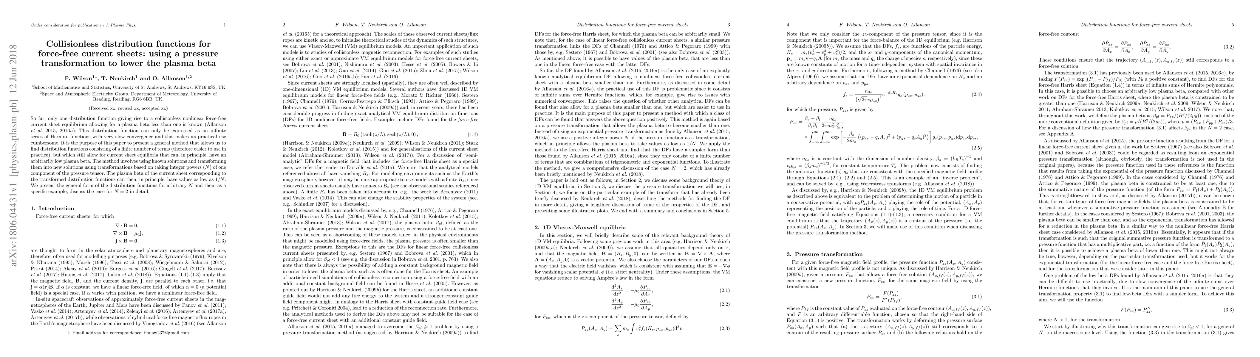 This paper introduces a method to derive collisionless distribution functions for force-free current sheet equilibria that allow for a plasma beta less than one, using pressure transformations to simplify the infinite series approach. The method provides finite-term distribution functions, facilitating practical use while maintaining the capability for low plasma beta values.