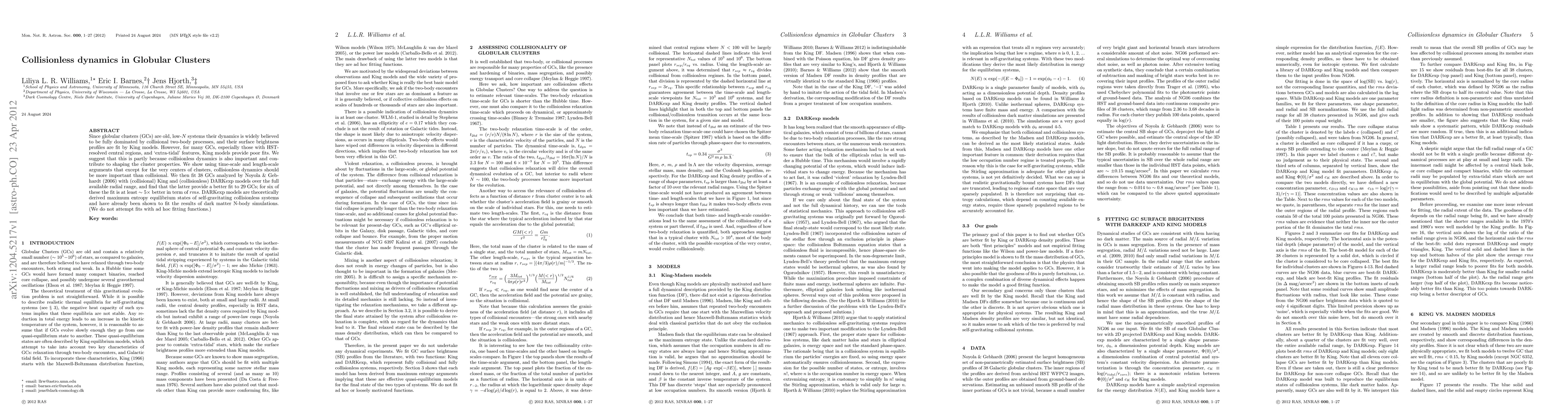 New research suggests that collisionless dynamics plays a crucial role in shaping globular cluster properties, particularly for clusters with HST-resolved central regions, and provides better fits to 29 out of 38 analyzed GCs using a new model.