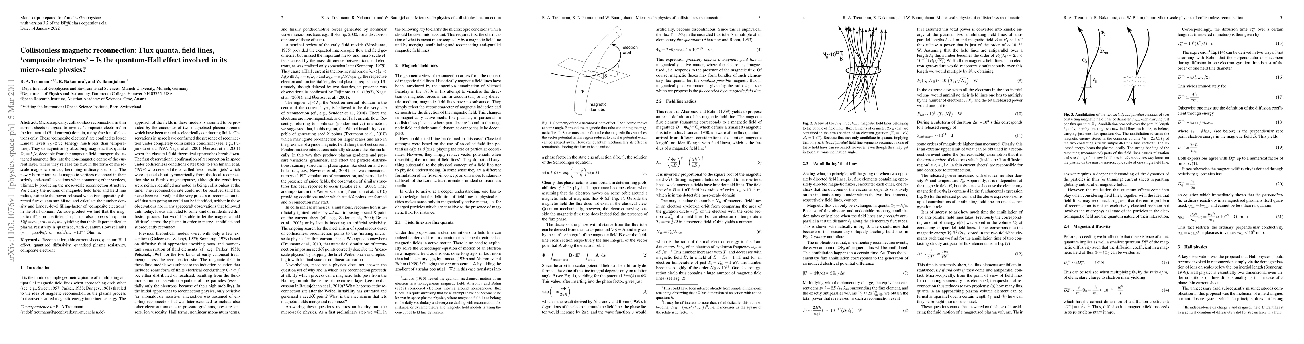 Research on collisionless magnetic reconnection reveals that quantum Hall effect plays a role in micro-scale physics, involving composite electrons that demagnetize and release magnetic flux quanta.