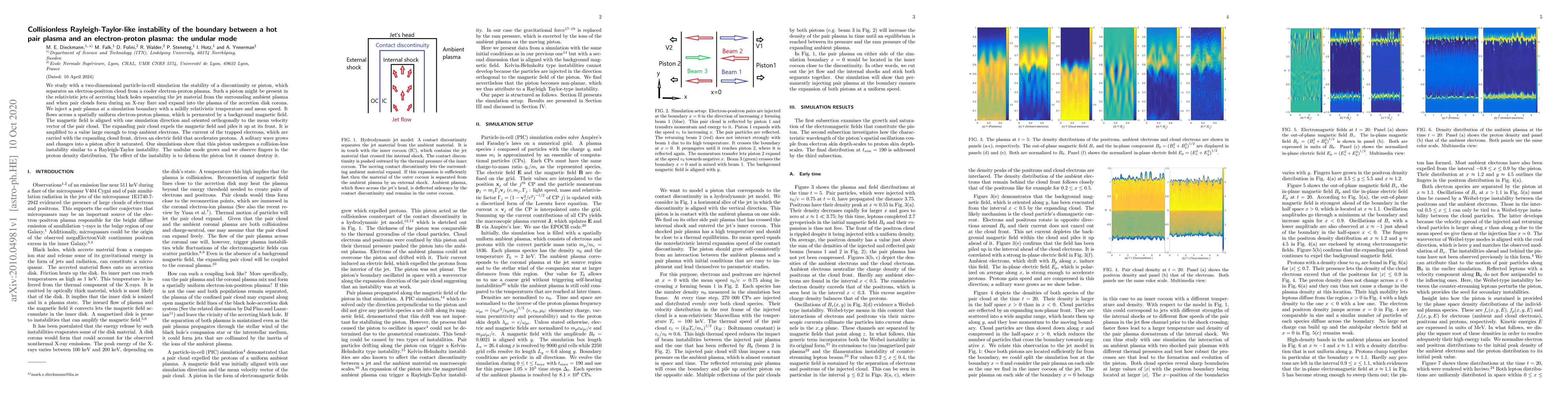 This research investigates the collisionless Rayleigh-Taylor-like instability at the boundary between a hot pair plasma and a cooler electron-proton plasma using particle-in-cell simulations. The study finds that the expanding pair plasma induces an undular mode instability, resulting in finger-like structures in the proton density, though it does not destroy the piston.