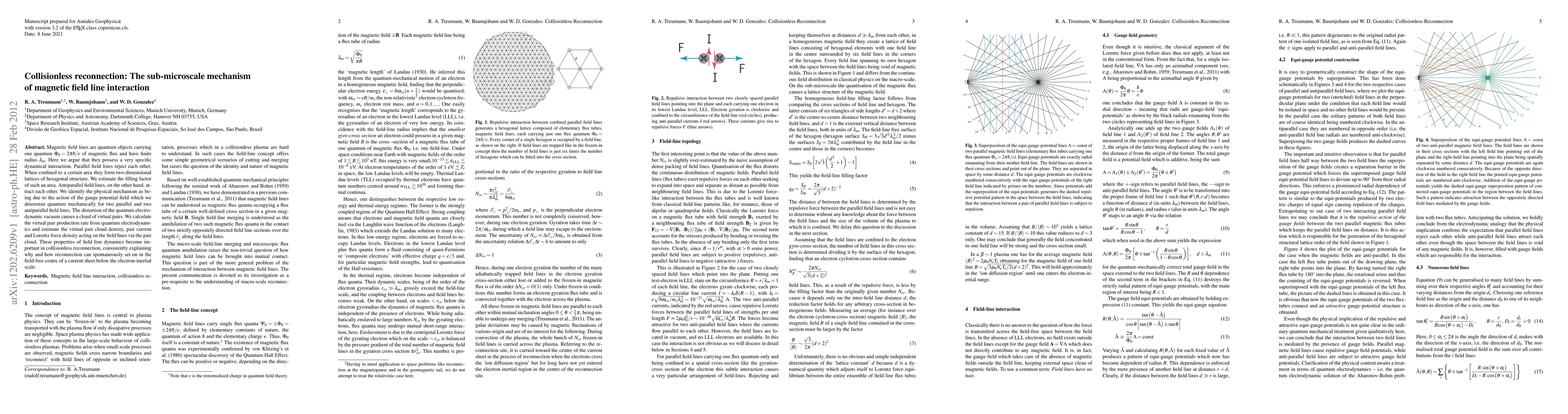 Researchers found that magnetic field lines interact with each other through a quantum mechanism, forming hexagonal lattices when parallel and attracting each other when antiparallel, leading to spontaneous reconnection in current sheets.