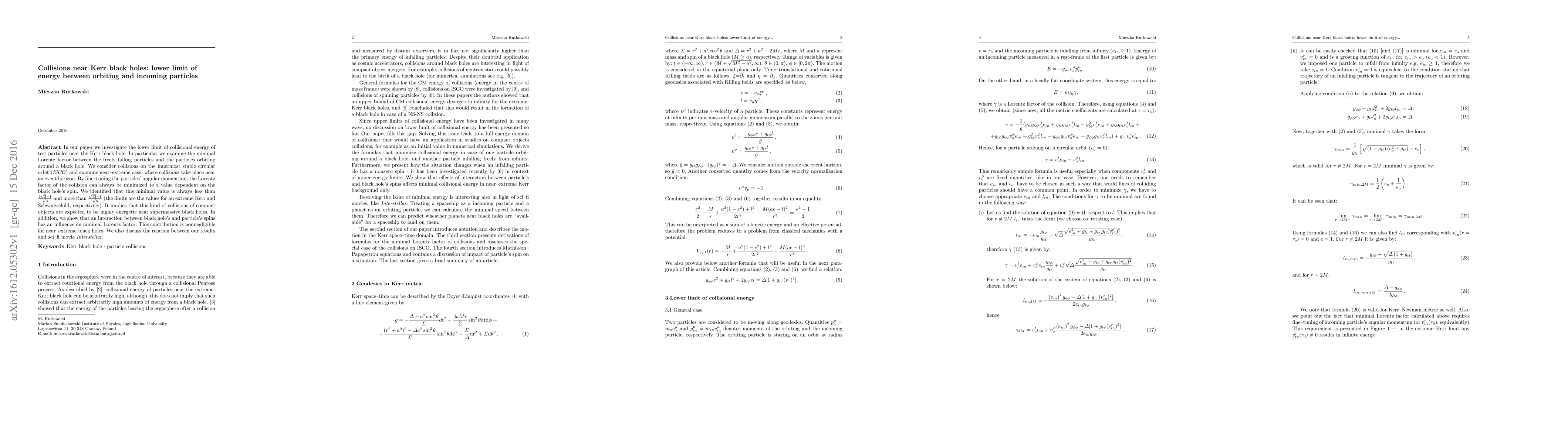 This research paper explores the minimum energy of collisions between particles orbiting a Kerr black hole and those falling into it, focusing on the innermost stable circular orbit and near the event horizon. The study finds that the minimum Lorentz factor is always below a certain threshold for extreme Kerr and Schwarzschild black holes, indicating highly energetic collisions near supermassive black holes. The interaction between the black hole's and particle's spins also impacts this minimum Lorentz factor, particularly for near-extreme black holes, with implications for astrophysical phenomena and references to the movie Interstellar.