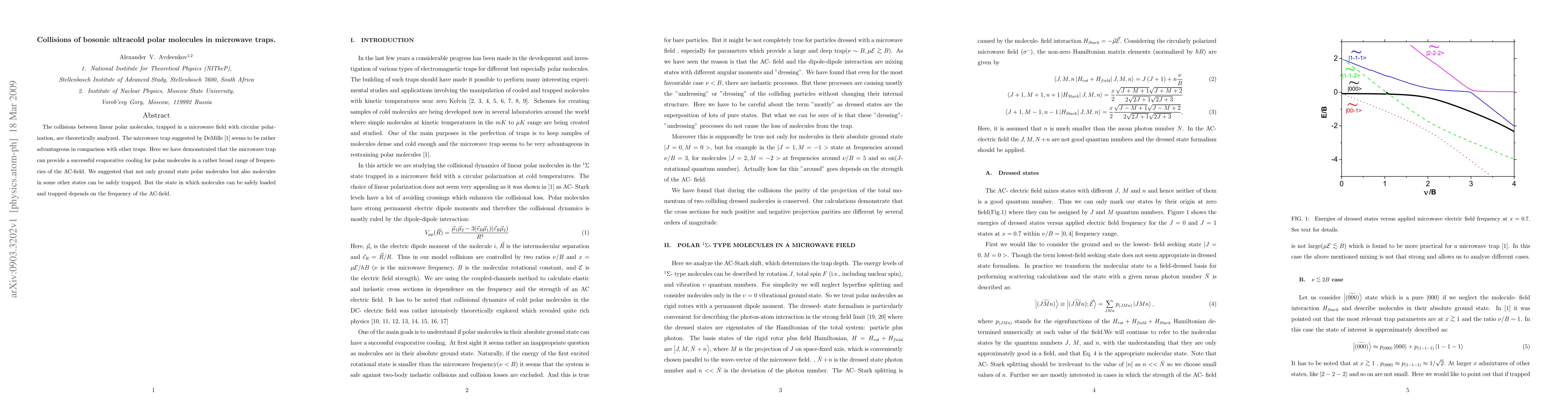 This paper analyzes the collisions of bosonic ultracold polar molecules trapped in a microwave field with circular polarization, demonstrating the effectiveness of the DeMille microwave trap for evaporative cooling over a broad frequency range. It suggests that both ground state and some excited state polar molecules can be safely trapped, contingent on the AC-field frequency.