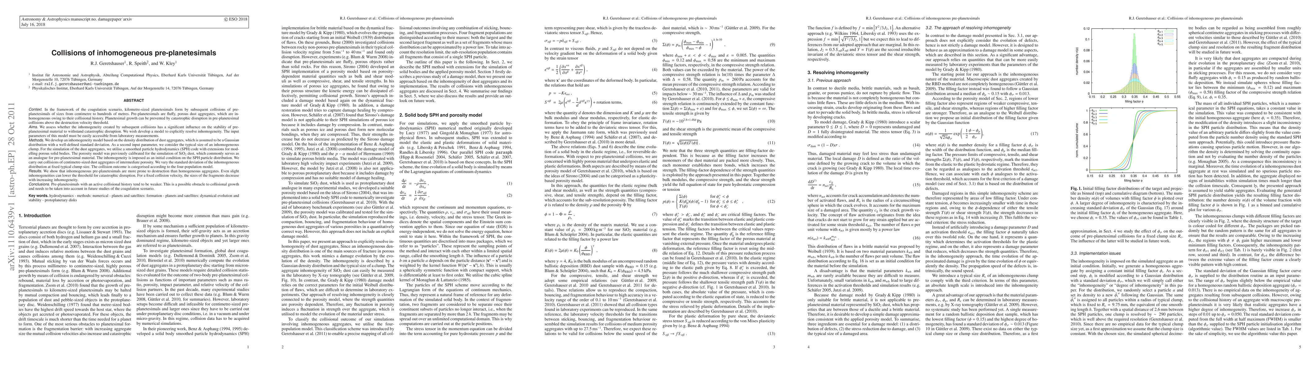 In the framework of the coagulation scenario, kilometre-sized planetesimals form by subsequent collisions of pre-planetesimals of sizes from centimetre to hundreds of metres. Pre-planetesimals are fluffy, porous dust aggregates, which are inhomogeneous owing to their collisional history. Planetesimal growth can be prevented by catastrophic disruption in pre-planetesimal collisions above the destruction velocity threshold. We develop an inhomogeneity model based on the density distribution of dust aggregates, which is assumed to be a Gaussian distribution with a well-defined standard deviation. As a second input parameter, we consider the typical size of an inhomogeneous clump. These input parameters are easily accessible by laboratory experiments. For the simulation of the dust aggregates, we utilise a smoothed particle hydrodynamics (SPH) code with extensions for modelling porous solid bodies. The porosity model was previously calibrated for the simulation of silica dust, which commonly serves as an analogue for pre-planetesimal material. The inhomogeneity is imposed as an initial condition on the SPH particle distribution. We carry out collisions of centimetre-sized dust aggregates of intermediate porosity. We vary the standard deviation of the inhomogeneous distribution at fixed typical clump size. The collision outcome is categorised according to the four-population model. We show that inhomogeneous pre-planetesimals are more prone to destruction than homogeneous aggregates. Even slight inhomogeneities can lower the threshold for catastrophic disruption. For a fixed collision velocity, the sizes of the fragments decrease with increasing inhomogeneity. Pre-planetesimals with an active collisional history tend to be weaker. This is a possible obstacle to collisional growth and needs to be taken into account in future studies of the coagulation scenario.