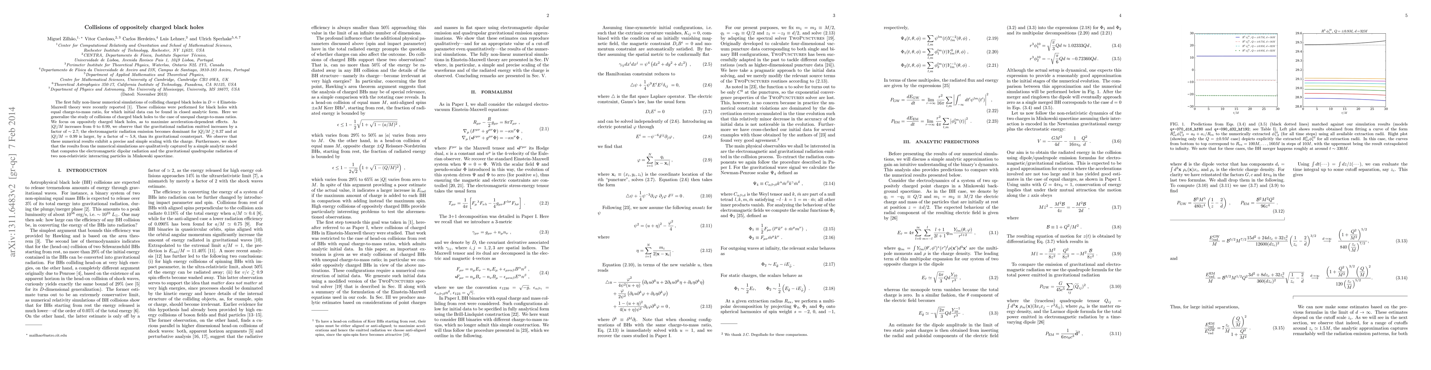 The first fully non-linear numerical simulations of colliding charged black holes in D=4 Einstein-Maxwell theory were recently reported arXiv:1205.1063. These collisions were performed for black holes with equal charge-to-mass ratio, for which initial data can be found in closed analytic form. Here we generalize the study of collisions of charged black holes to the case of unequal charge-to-mass ratios. We focus on oppositely charged black holes, as to maximize acceleration-dependent effects. As |Q|/M increases from 0 to 0.99, we observe that the gravitational radiation emitted increases by a factor of ~ 2.7; the electromagnetic radiation emission becomes dominant for |Q|/M >~ 0.37 and at |Q|/M=0.99 is larger, by a factor of ~ 5.8, than its gravitational counterpart. We observe that these numerical results exhibit a precise and simple scaling with the charge. Furthermore, we show that the results from the numerical simulations are qualitatively captured by a simple analytic model that computes the electromagnetic dipolar radiation and the gravitational quadrupolar radiation of two non-relativistic interacting particles in Minkowski spacetime.