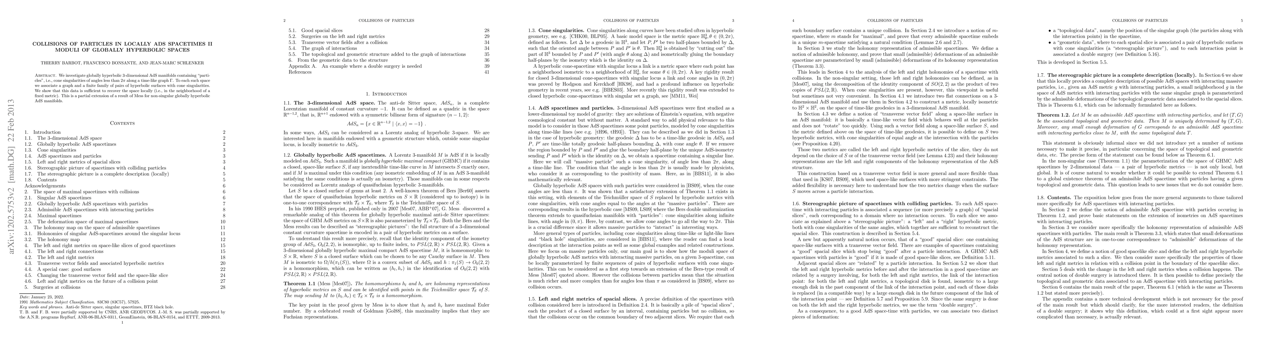 This paper explores 3-dimensional globally hyperbolic AdS manifolds with cone singularities representing particles, associating each such manifold with a graph and pairs of hyperbolic surfaces. It demonstrates that this data can locally reconstruct the manifold, extending a previous result for non-singular globally hyperbolic AdS spaces.