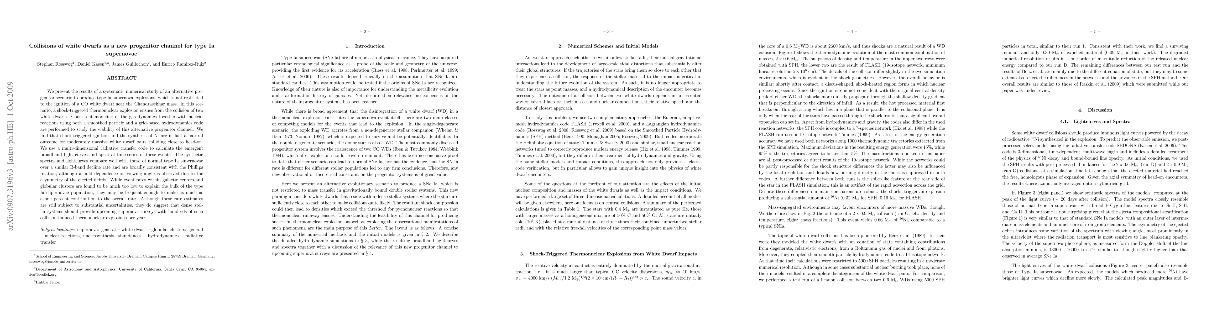 We present the results of a systematic numerical study of an alternative progenitor scenario to produce type Ia supernova explosions, which is not restricted to the ignition of a CO white dwarf near the Chandrasekhar mass. In this scenario, a shock-triggered thermonuclear explosion ensues from the collision of two white dwarfs. Consistent modeling of the gas dynamics together with nuclear reactions using both a smoothed particle and a grid-based hydrodynamics code are performed to study the viability of this alternative progenitor channel. We find that shock-triggered ignition and the synthesis of Ni are in fact a natural outcome for moderately massive white dwarf pairs colliding close to head-on. We use a multi-dimensional radiative transfer code to calculate the emergent broadband light curves and spectral time-series of these events. The synthetic spectra and lightcurves compare well with those of normal type Ia supernovae over a similar B-band decline rate and are broadly consistent with the Phillips relation, although a mild dependence on viewing angle is observed due to the asymmetry of the ejected debris. While event rates within galactic centers and globular clusters are found to be much too low to explain the bulk of the type Ia supernovae population, they may be frequent enough to make as much as a one percent contribution to the overall rate. Although these rate estimates are still subject to substantial uncertainties, they do suggest that dense stellar systems should provide upcoming supernova surveys with hundreds of such collision-induced thermonuclear explosions per year.