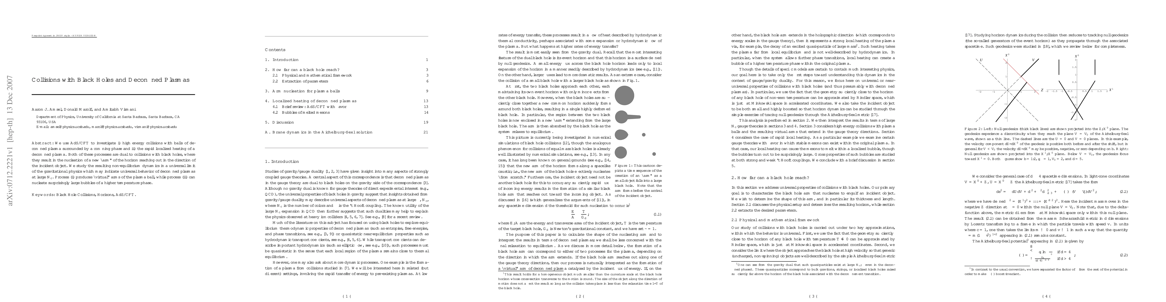 Researchers used AdS/CFT to study high-energy collisions with deconfined plasmas, finding they produce virtual arms of the plasma ball or large bubbles of a higher temperature phase, suggesting universal behavior in gravitational physics.