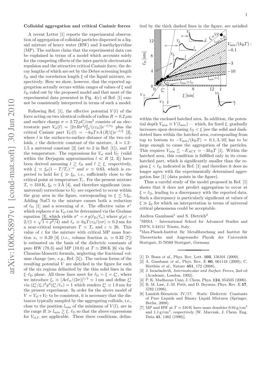 This paper critiques a recent experimental observation of colloidal aggregation, arguing that the proposed model based on electrostatic repulsion and critical Casimir forces fails to account for the observed aggregation within certain ranges of correlation and Debye screening lengths. It suggests that the experimental data cannot be consistently interpreted using the given model.