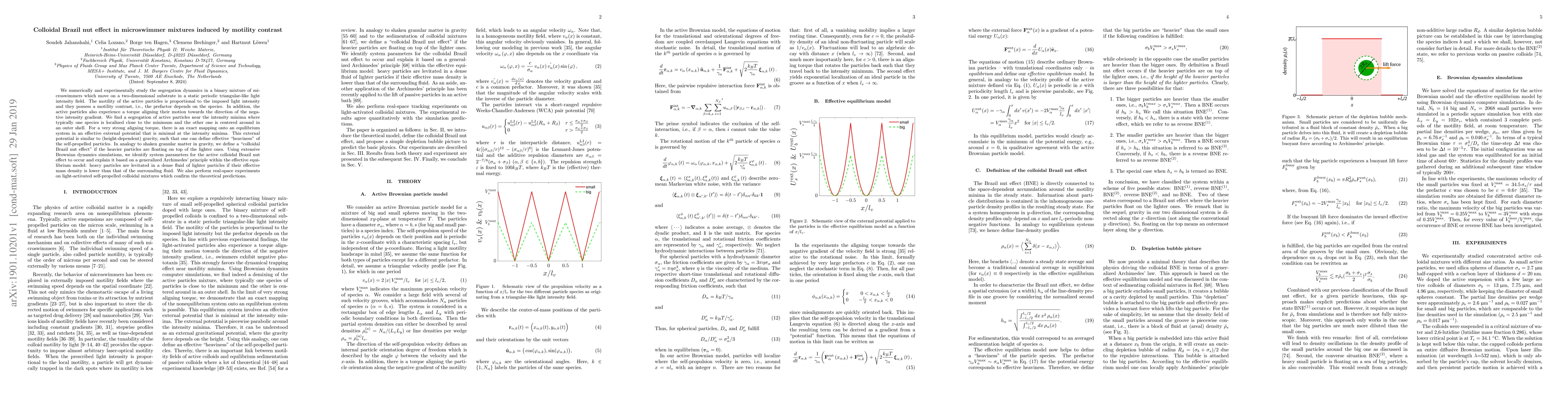 This paper investigates the segregation dynamics in a binary mixture of microswimmers under a static light field, revealing a "colloidal Brazil nut effect" where particles of different motilities segregate based on an effective potential mimicking gravity. Simulations and experiments show that heavier particles can float above lighter ones due to effective density differences in the active fluid.