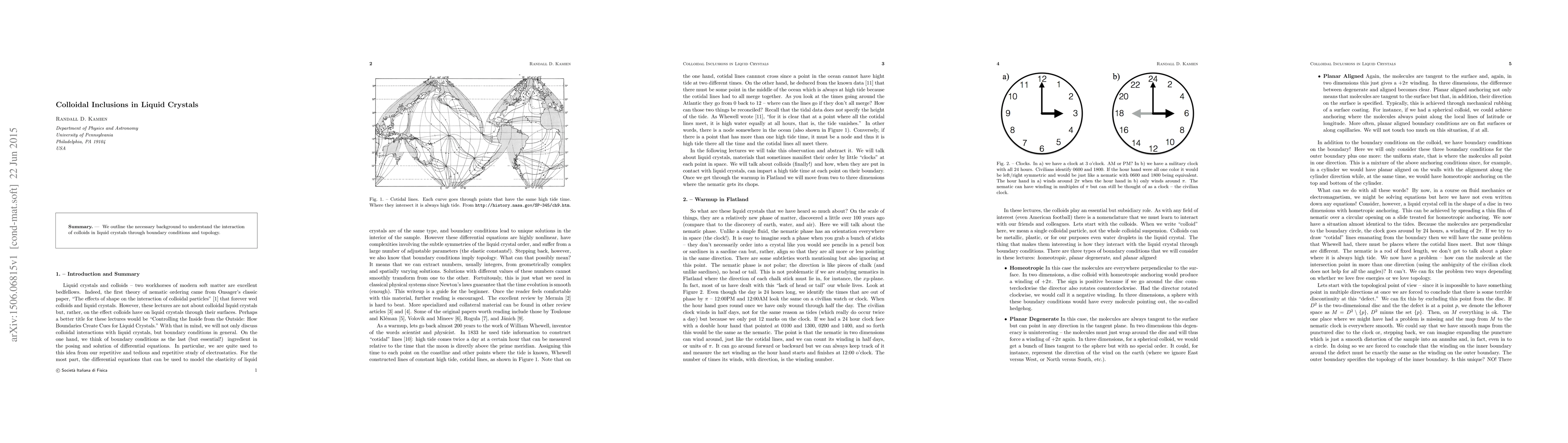 We outline the necessary background to understand the interaction of colloids in liquid crystals through boundary conditions and topology.
