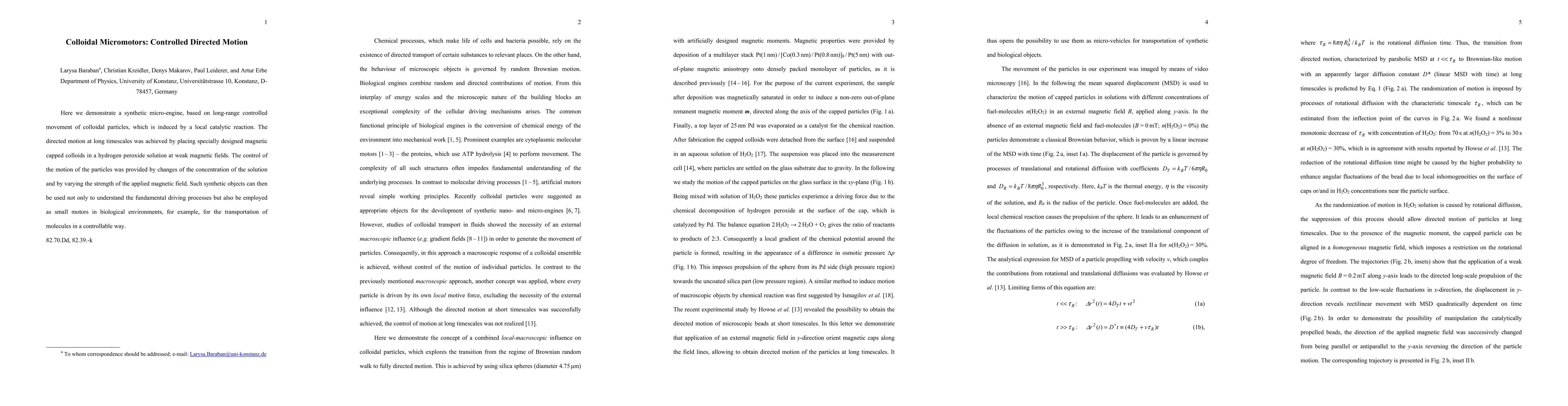 The paper introduces a novel synthetic micro-engine based on colloidal micromotors propelled by catalytic reactions and controlled via magnetic fields, demonstrating directed motion at long timescales.