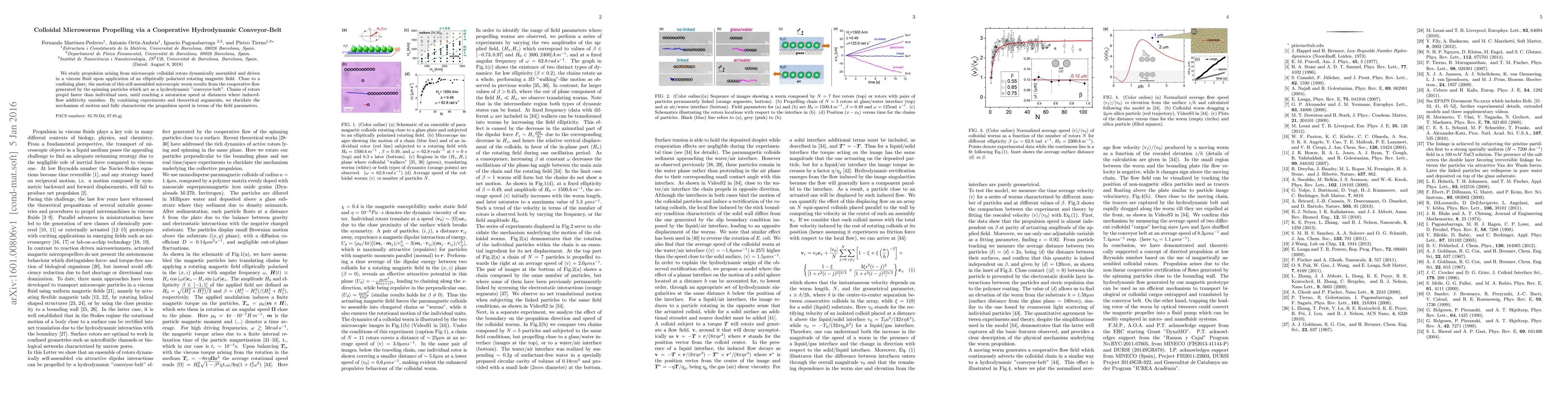 We study propulsion arising from microscopic colloidal rotors dynamically assembled and driven in a viscous fluid upon application of an elliptically polarized rotating magnetic field. Close to a confining plate, the motion of this self-assembled microscopic worm results from the cooperative flow generated by the spinning particles which act as a hydrodynamic "conveyor belt." Chains of rotors propel faster than individual ones, until reaching a saturation speed at distances where induced-flow additivity vanishes. By combining experiments and theoretical arguments, we elucidate the mechanism of motion and fully characterize the propulsion speed in terms of the field parameters.