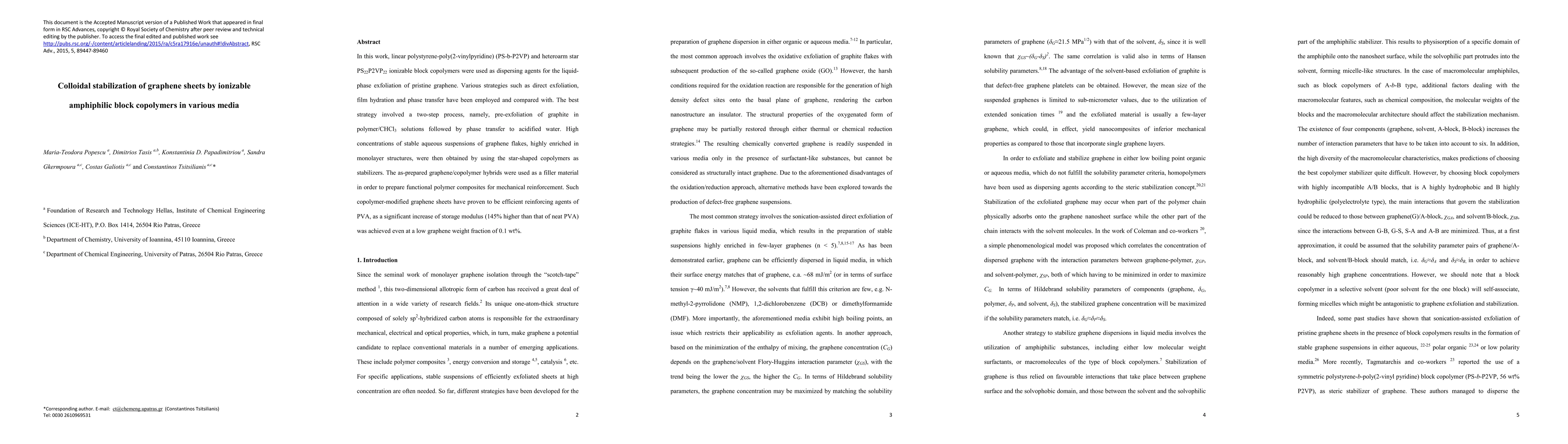 Researchers successfully stabilized graphene sheets in aqueous suspensions using ionizable amphiphilic block copolymers, enabling efficient mechanical reinforcement of polymer composites.
