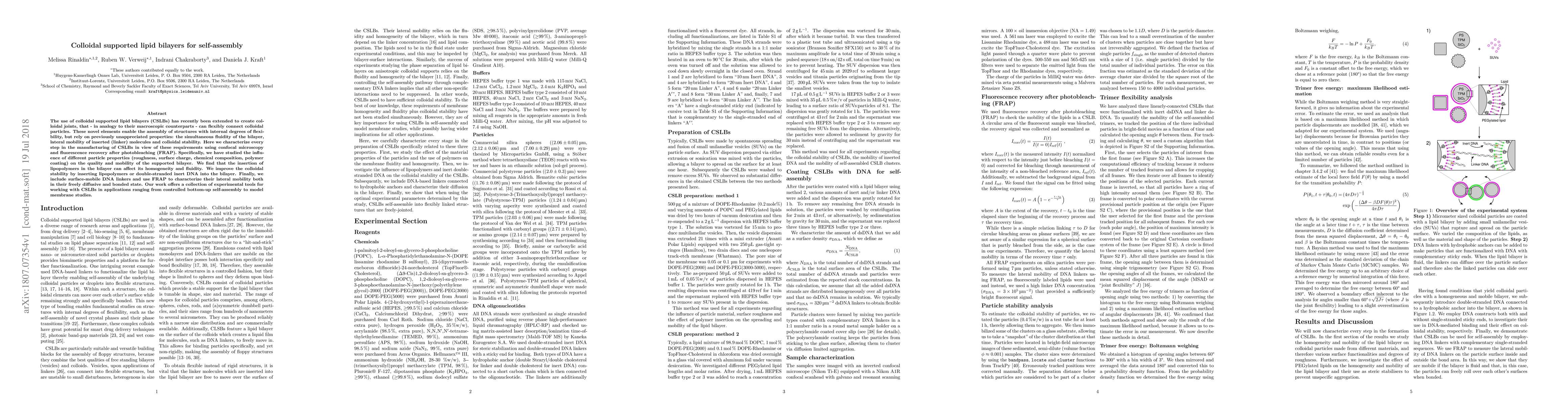 This paper investigates the manufacturing of colloidal supported lipid bilayers (CSLBs) to create flexible colloidal joints, examining how particle properties affect bilayer fluidity and stability. The study finds that lipopolymers and inert DNA can enhance stability, while surface-mobile DNA linkers are characterized for their mobility using FRAP.