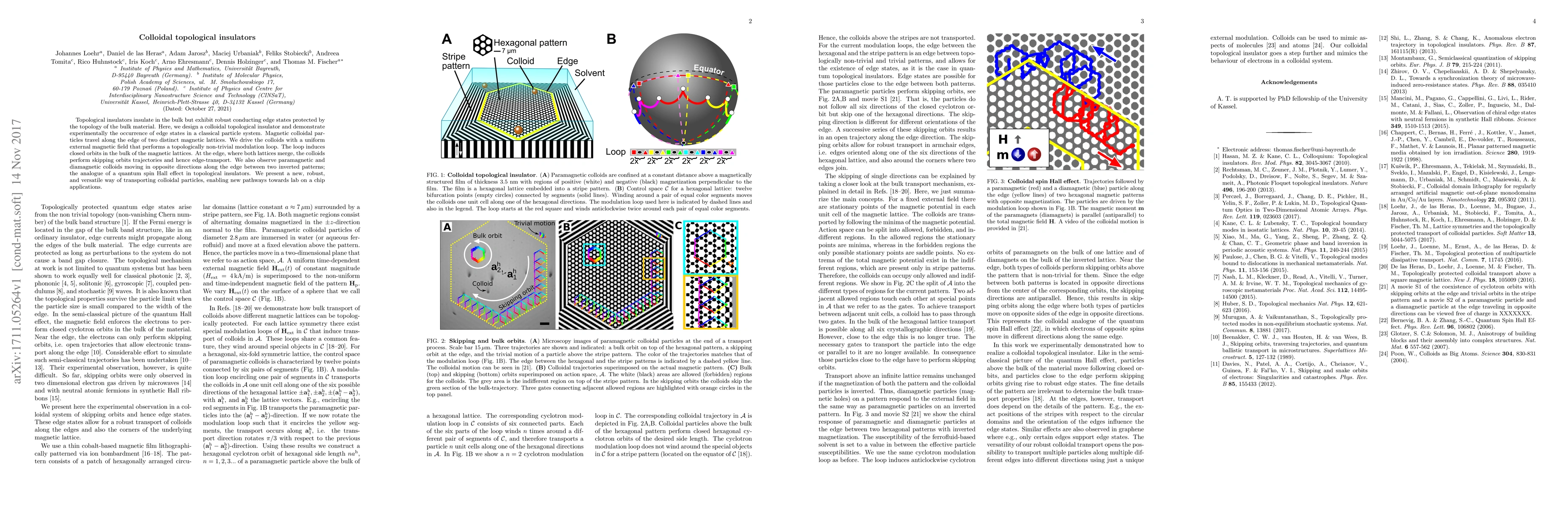 Topological insulators insulate in the bulk but exhibit robust conducting edge states protected by the topology of the bulk material. Here, we design a colloidal topological insulator and demonstrate experimentally the occurrence of edge states in a classical particle system. Magnetic colloidal particles travel along the edge of two distinct magnetic lattices. We drive the colloids with a uniform external magnetic field that performs a topologically non-trivial modulation loop. The loop induces closed orbits in the bulk of the magnetic lattices. At the edge, where both lattices merge, the colloids perform skipping orbits trajectories and hence edge-transport. We also observe paramagnetic and diamagnetic colloids moving in opposite directions along the edge between two inverted patterns; the analogue of a quantum spin Hall effect in topological insulators. We present a new, robust, and versatile way of transporting colloidal particles, enabling new pathways towards lab on a chip applications.