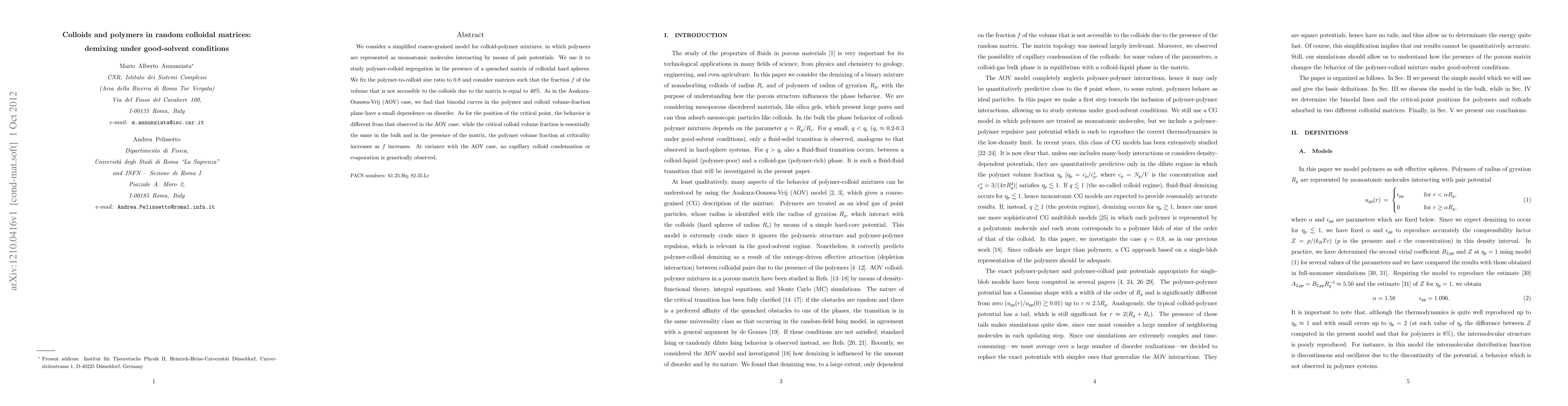 This paper investigates polymer-colloid segregation in a random colloidal matrix using a simplified model, finding that while the critical colloid volume fraction remains unchanged, the polymer volume fraction increases with matrix density, leading to demixing under good-solvent conditions without capillary condensation or evaporation.