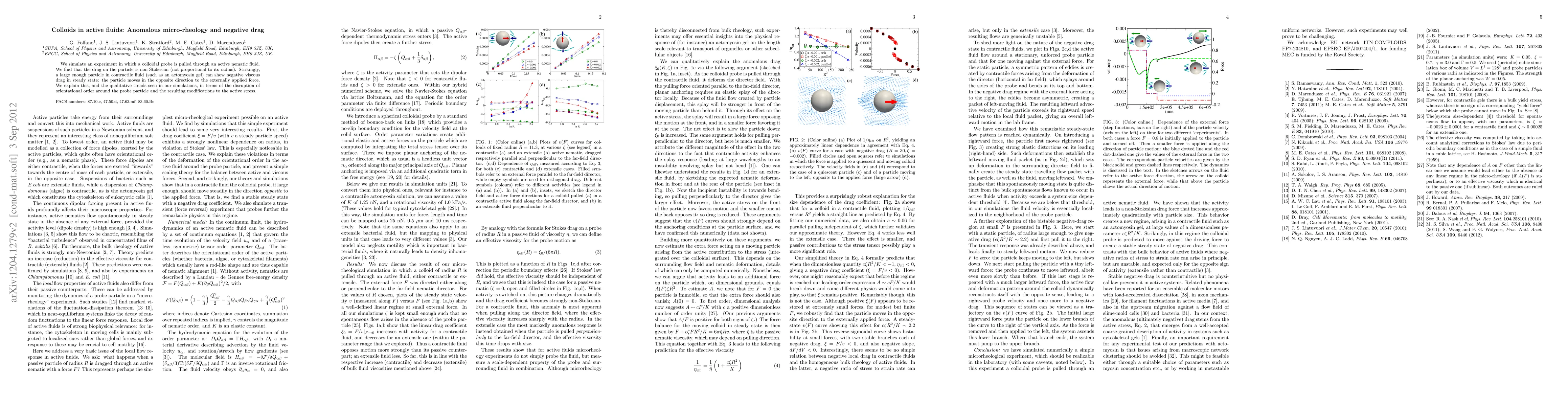 We simulate an experiment in which a colloidal probe is pulled through an active nematic fluid. We find that the drag on the particle is non-Stokesian (not proportional to its radius). Strikingly, a large enough particle in contractile fluid (such as an actomyosin gel) can show negative viscous drag in steady state: the particle moves in the opposite direction to the externally applied force. We explain this, and the qualitative trends seen in our simulations, in terms of the disruption of orientational order around the probe particle and the resulting modifications to the active stress.