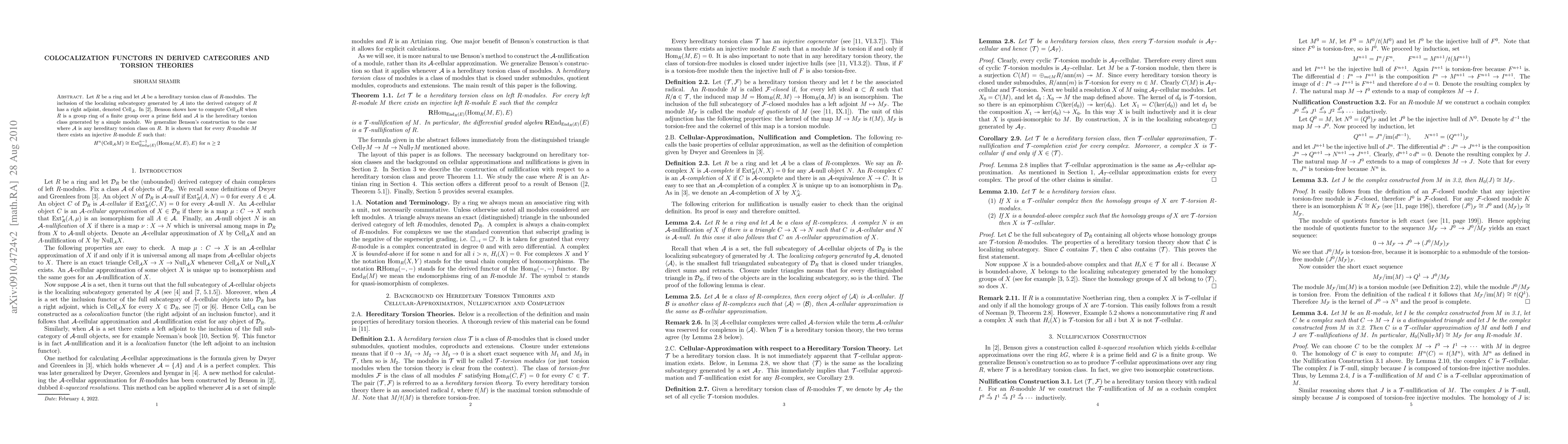 Let R be a ring and let T be a hereditary torsion class of R-modules. The inclusion of the localizing subcategory generated by T into the derived category of R has a right adjoint, which is a colocalization. Benson has recently shown how to compute this right sdjoint when R is the group ring of a finite group over a prime field and T is the hereditary torsion class generated by a simple module. We generalize Benson's construction to the case where T is any hereditary torsion class on R. This yields an explicit formula for the colocalization with respect to T, using an injective cogenerator for T.