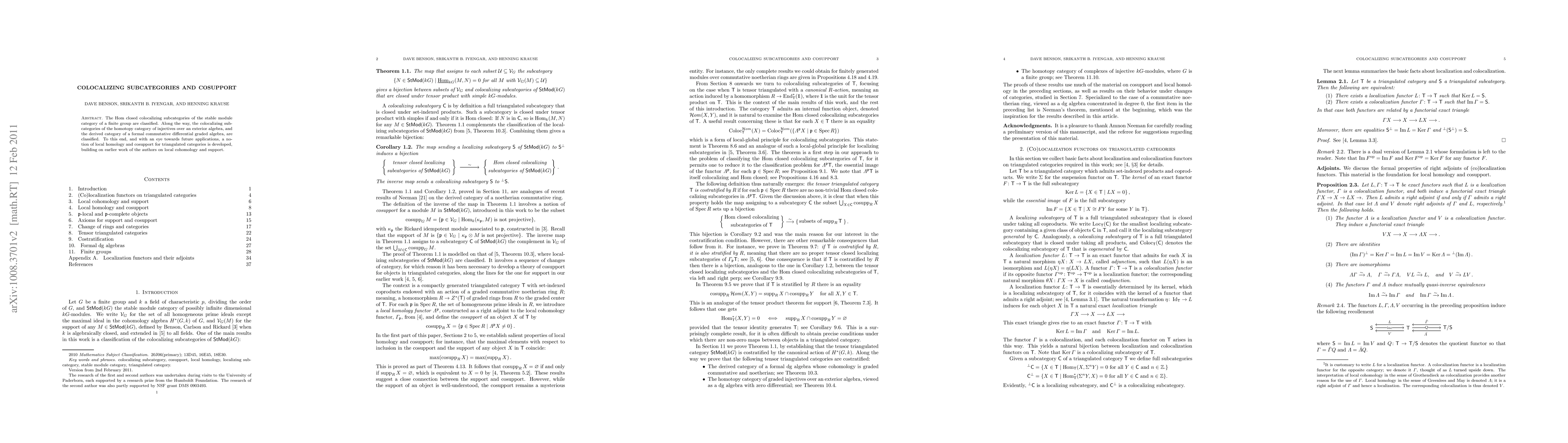 The Hom closed colocalizing subcategories of the stable module category of a finite group are classified. Along the way, the colocalizing subcategories of the homotopy category of injectives over an exterior algebra, and the derived category of a formal commutative differential graded algebra, are classified. To this end, and with an eye towards future applications, a notion of local homology and cosupport for triangulated categories is developed, building on earlier work of the authors on local cohomology and support.