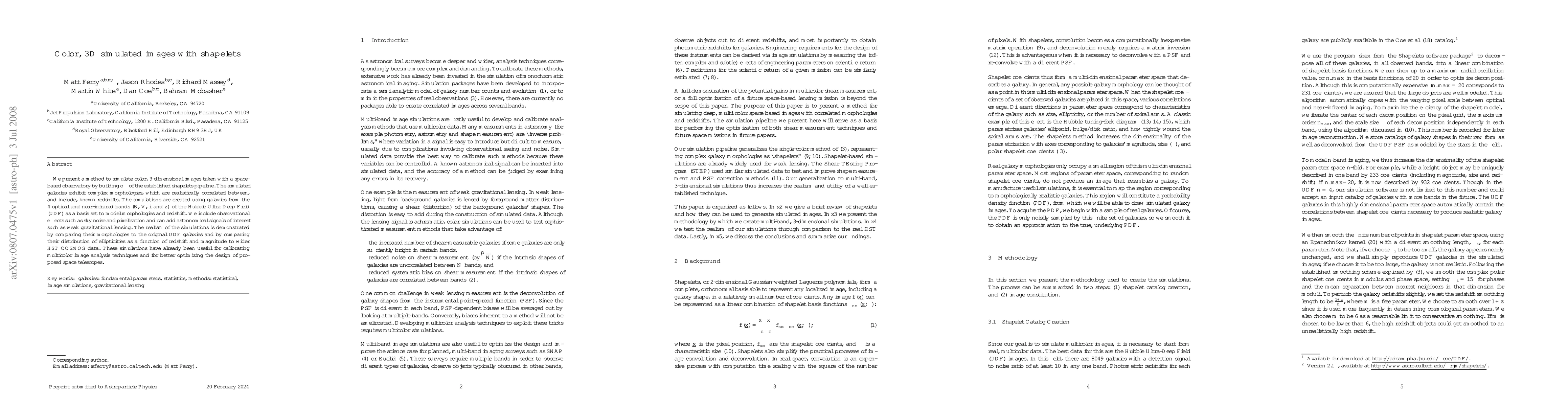 We present a method to simulate color, 3-dimensional images taken with a space-based observatory by building off of the established shapelets pipeline. The simulated galaxies exhibit complex morphologies, which are realistically correlated between, and include, known redshifts. The simulations are created using galaxies from the 4 optical and near-infrared bands (B, V, i and z) of the Hubble Ultra Deep Field (UDF) as a basis set to model morphologies and redshift. We include observational effects such as sky noise and pixelization and can add astronomical signals of interest such as weak gravitational lensing. The realism of the simulations is demonstrated by comparing their morphologies to the original UDF galaxies and by comparing their distribution of ellipticities as a function of redshift and magnitude to wider HST COSMOS data. These simulations have already been useful for calibrating multicolor image analysis techniques and for better optimizing the design of proposed space telescopes.