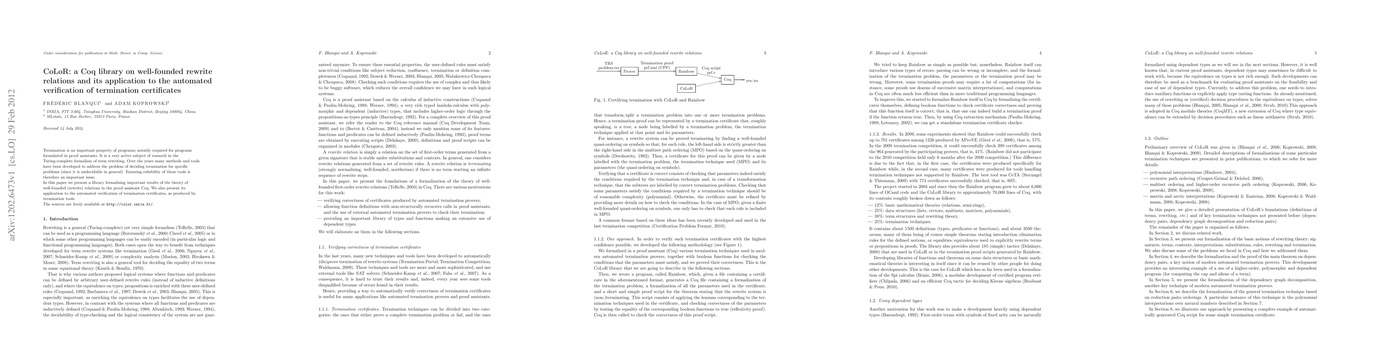 A new Coq library called CoLoR provides formalized results on well-founded rewrite relations for verifying termination certificates in programs. It helps ensure the reliability of tools used in proof assistants.