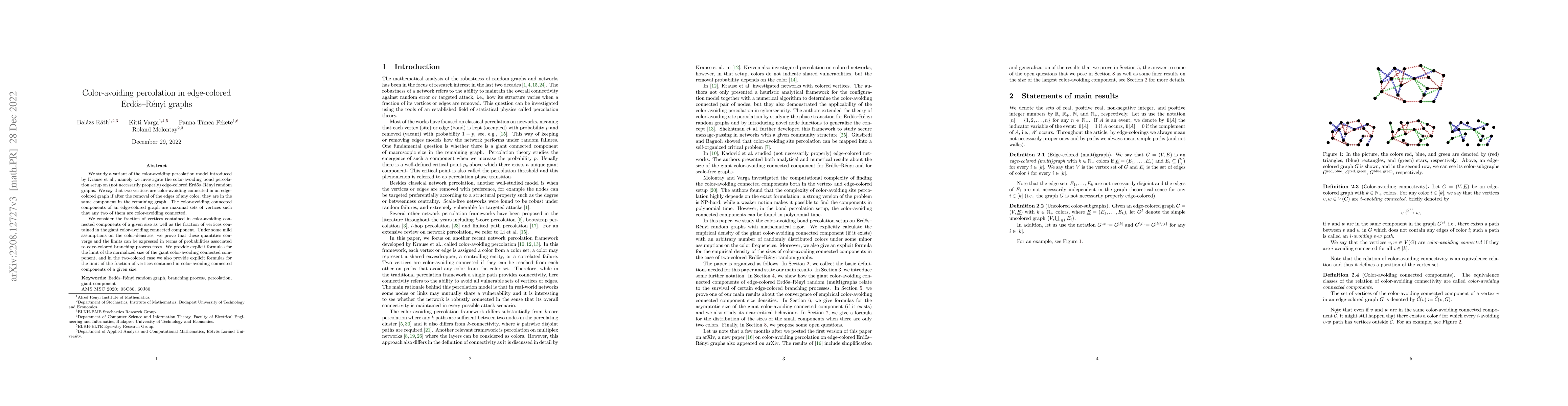 This paper explores a variant of color-avoiding percolation on edge-colored Erdős-Rényi graphs, focusing on the emergence and size of color-avoiding connected components. It establishes convergence of the fraction of vertices in these components and provides explicit formulas for the giant component's size under certain conditions.